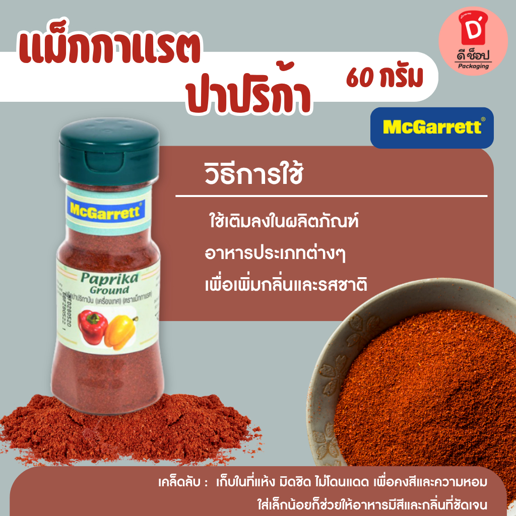 ผงปาปริก้า ตรา แม็กกาแรต ขนาด 60 กรัม ปาปริก้าป่น เครื่องเทศ Paprika Ground