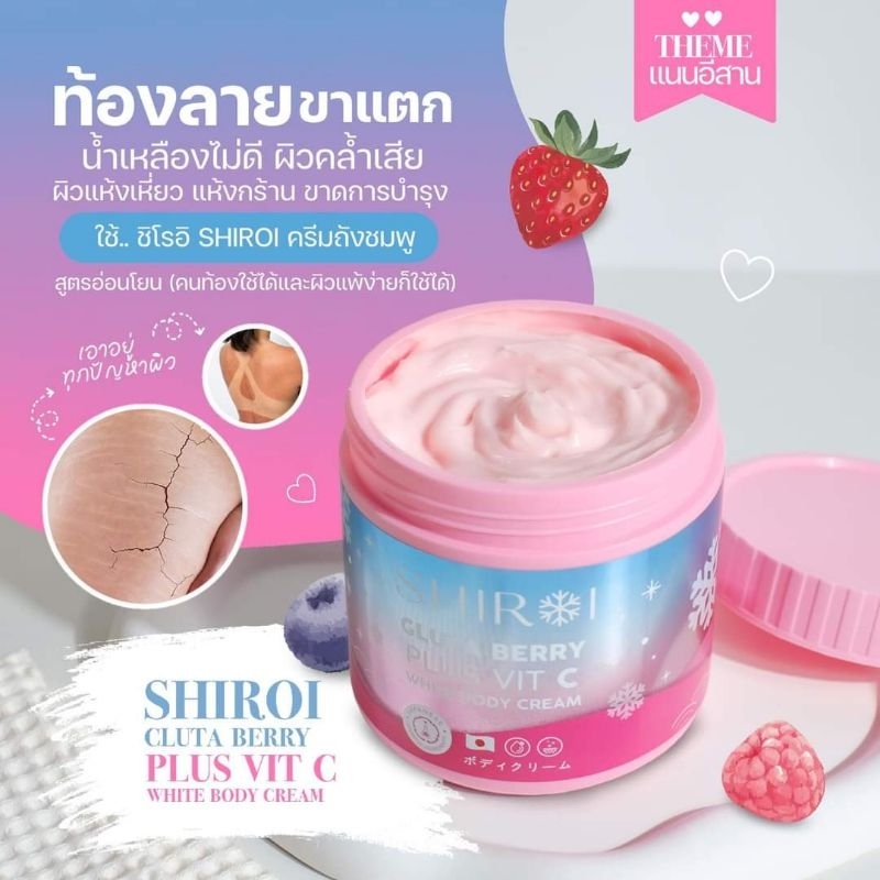 [ของแท้+ส่งฟรี] ชิโรอิ กลูต้า เบอร์รี่ พลัส วิตซี บำรุงผิวขาวใส Shiroi gluta berry plus vit c ครีมชิโรอิ ลดรอยแตกลาย