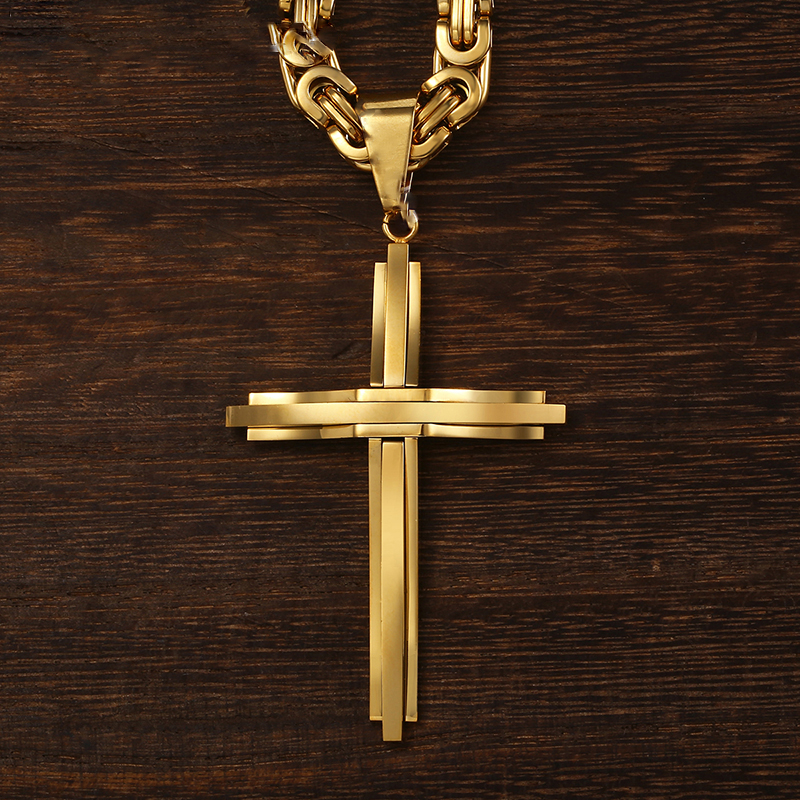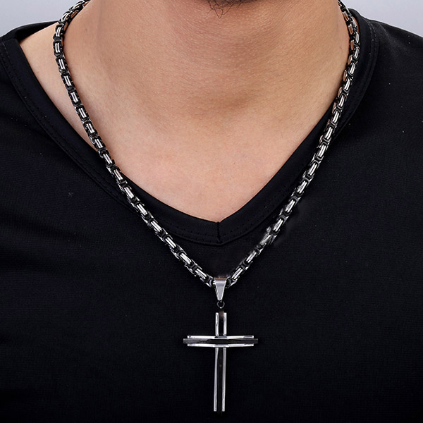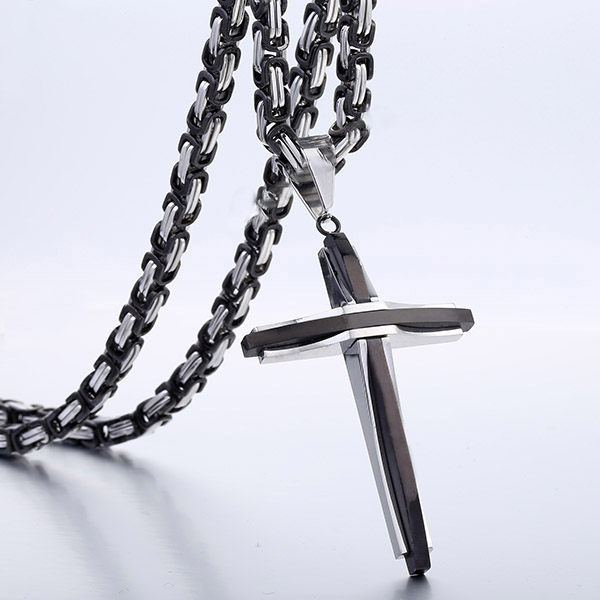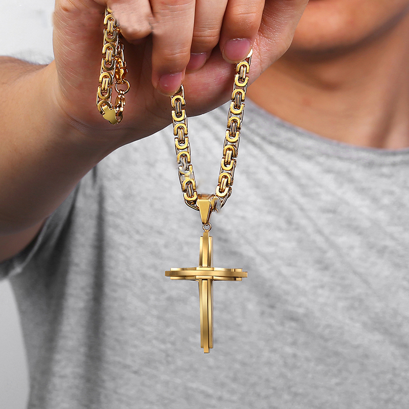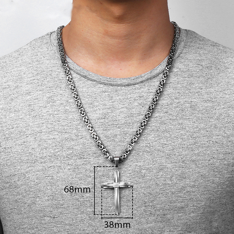 สร้อยคอ จี้ไม้กางเขน ผู้ชาย สีดํา ทอง เงิน คิวบา เชื่อมโยง โซ่ สเตนเลส จี้ สร้อยคอ ผู้ชาย ฮิปฮอป เครื่องประดับ