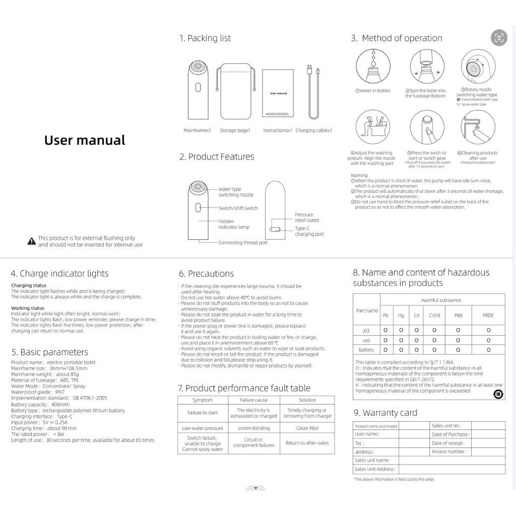 ???สเปรย์ทําความสะอาดร่างกายไฟฟ้า แบบพกพา ชาร์จไฟได้ สําหรับทําความสะอาดร่างกาย | ผลิตภัณฑ์ดูแลหลังคลอดและทารก | คันเร่งบําบัด