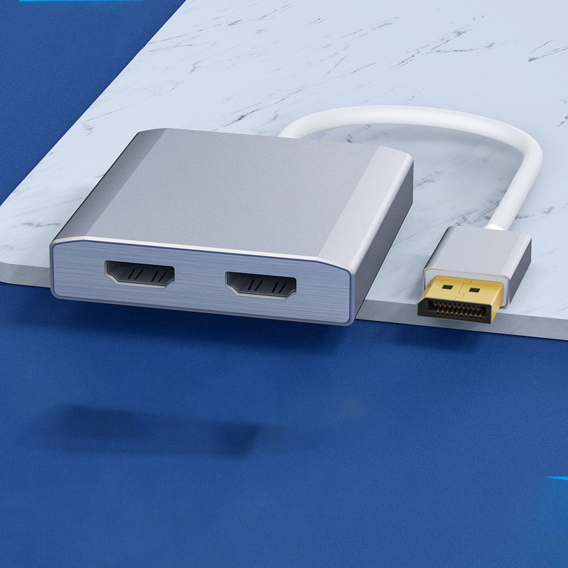 】แบ่งสัญญาณพอร์ตแสดงผลของคอมพิวเตอร์เป็นสัญญาณ Displayport สองสัญญาณและส่งไปยังจอภาพทำให้สัญญาณเสียงและวิดีโอเป็นเอาต์พุตพร้อมกัน (PS: อุปกรณ์ต้องทำงานในขณะที่ใช้งานได้).