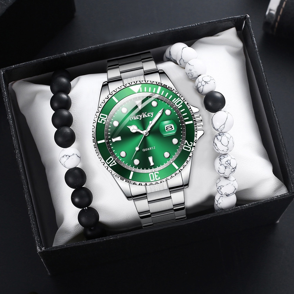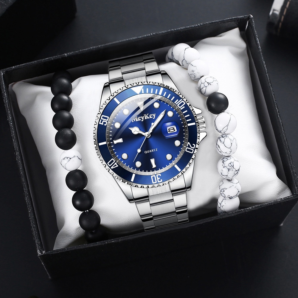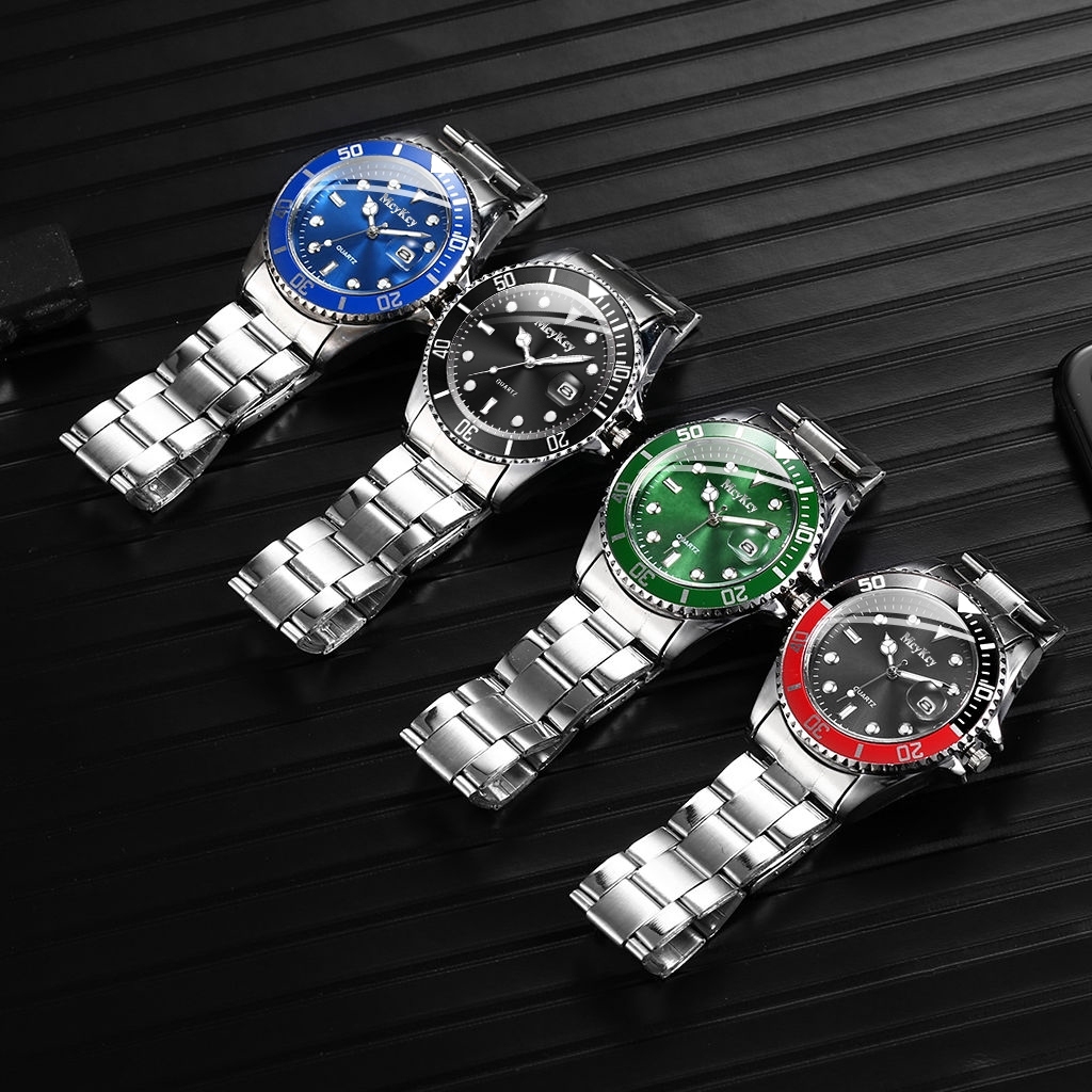 นาฬิกาข้อมือ สายแสตนเลส หรูหรา พร้อมปฏิทิน สไตล์นักธุรกิจ สําหรับผู้ชาย