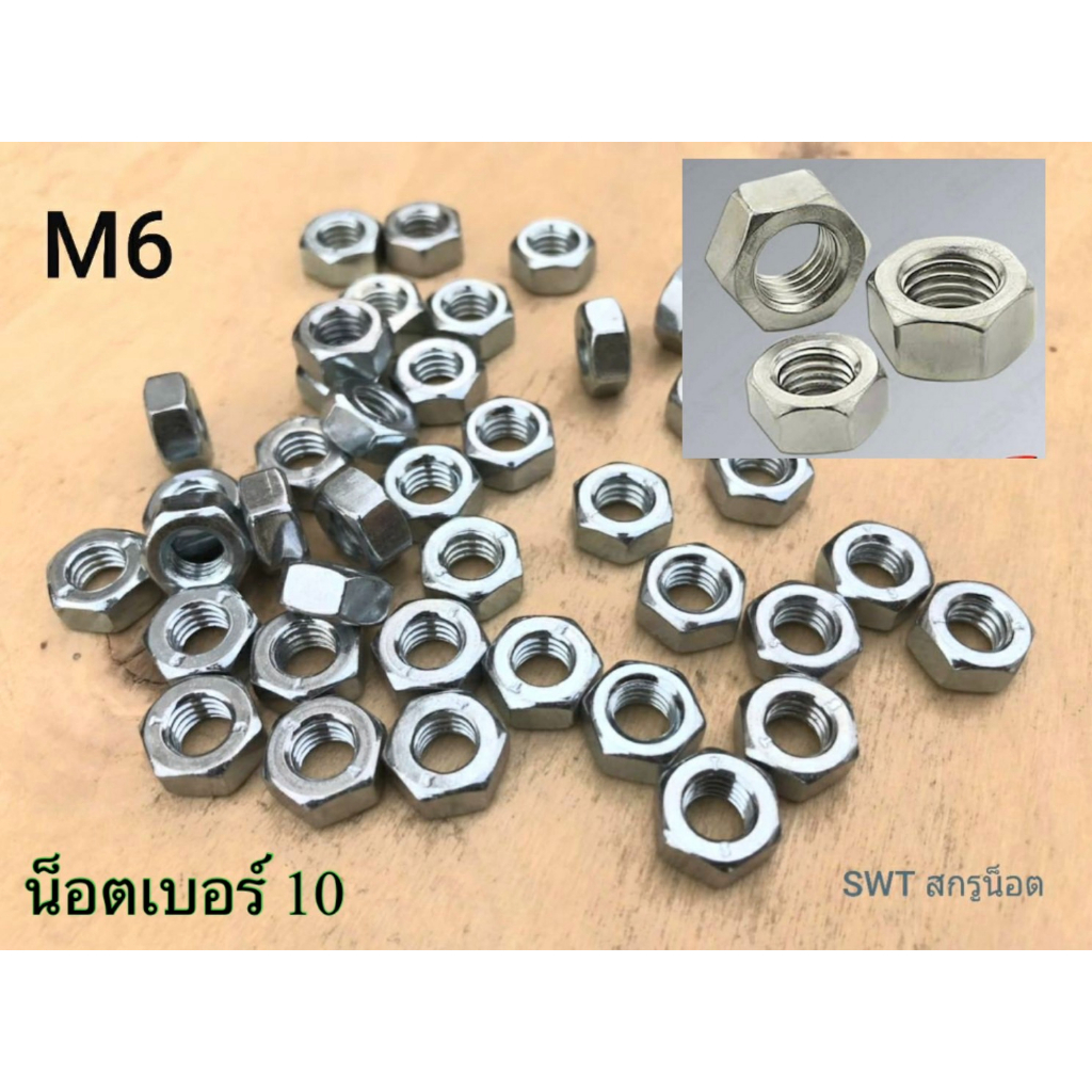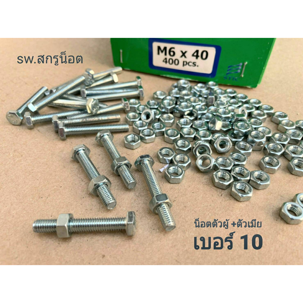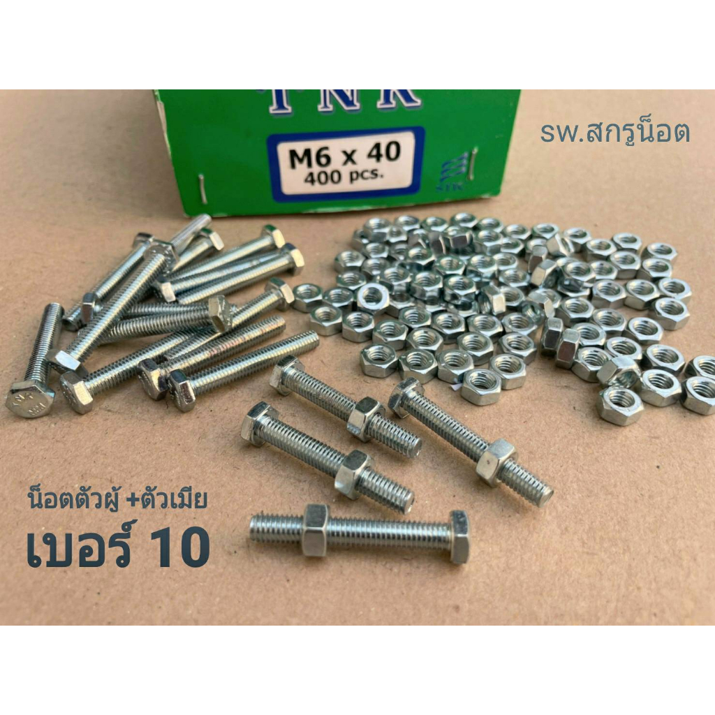 น็อตตัวผู้+ตัวเมียมิลขาวเบอร์ #10 M6x40mm (ราคาต่อแพ็คจำนวน 50 ชุด) เกลียว 1.00 mm แข็งแรงได้มาตรฐานน็อตไทย