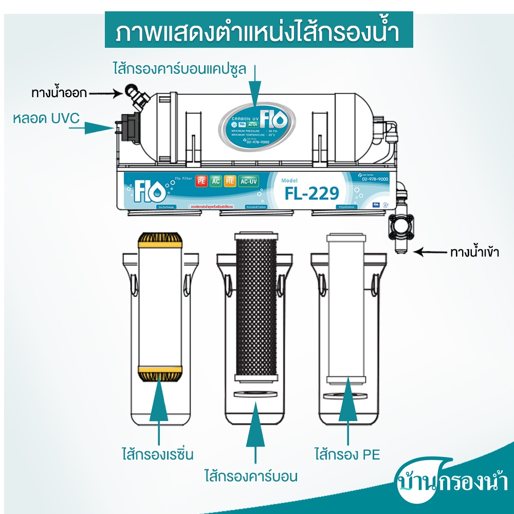 Flo เครื่องกรองน้ำดื่ม 5 ขั้นตอน ระบบ UVC รุ่น FL-229
