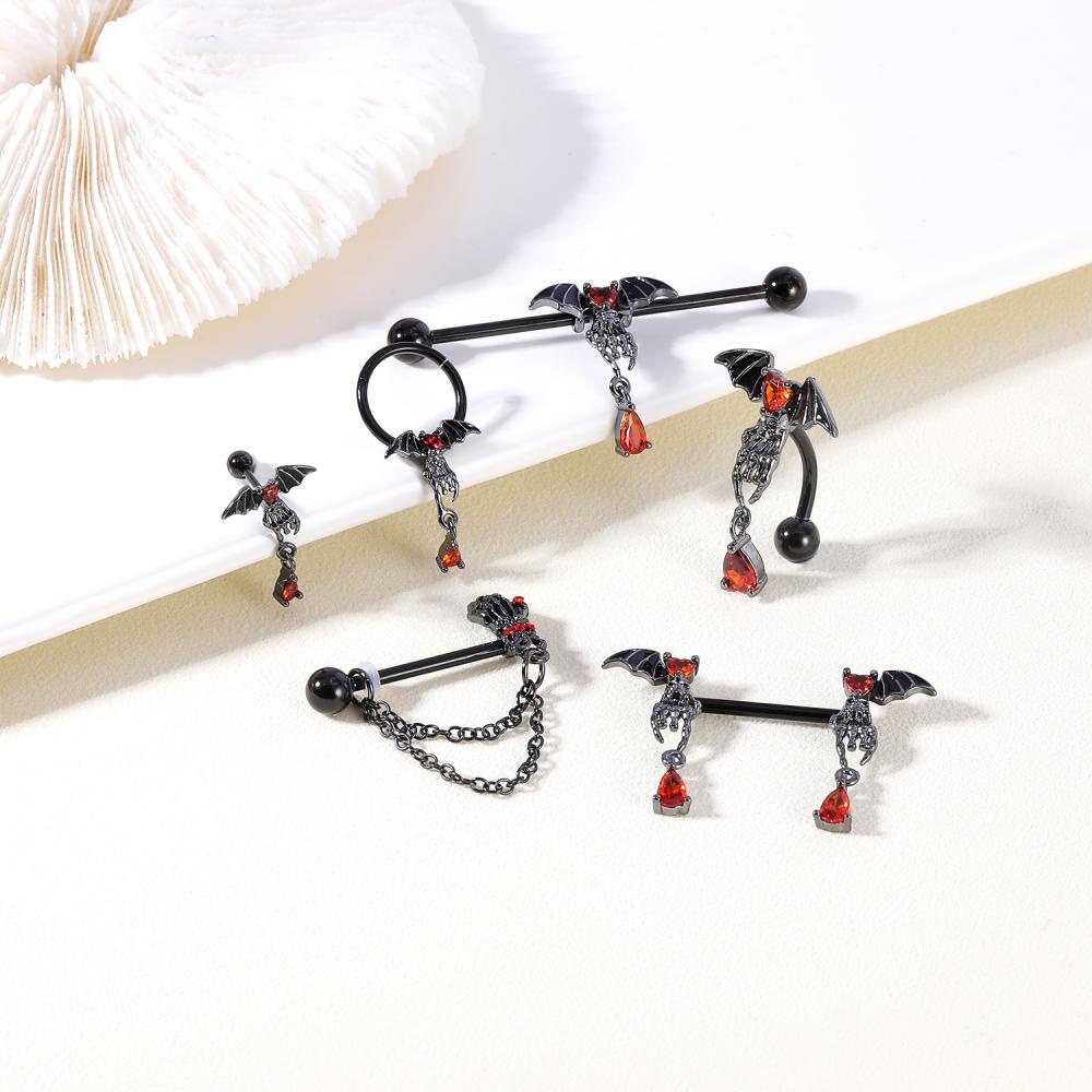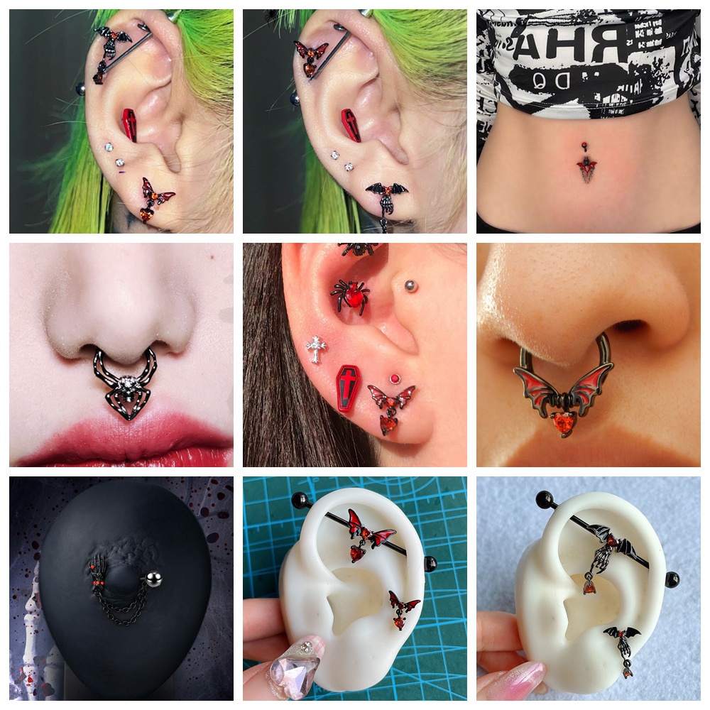 1 ชิ้น ค้างคาว แมงมุม จมูก เจาะ พังก์ กระดูกอ่อน ต่างหูสตั๊ด อุตสาหกรรม บาร์เบล สเตนเลส สะดือ แหวน เจาะร่างกาย