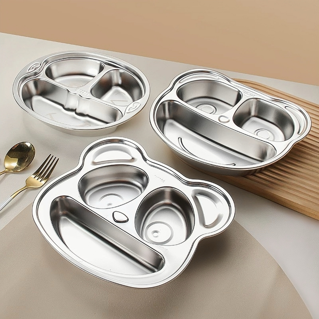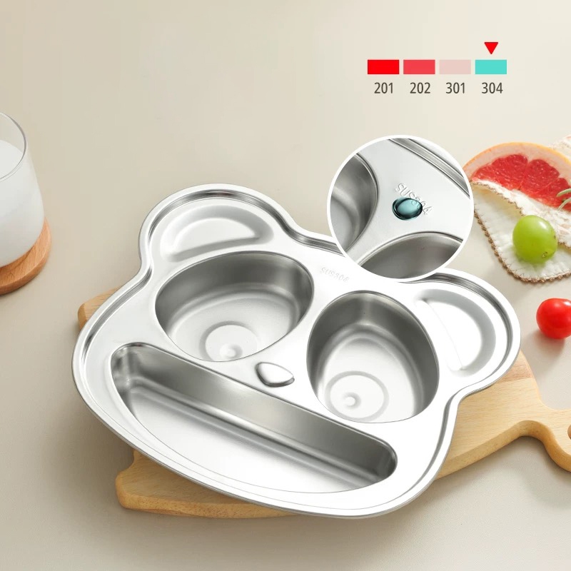 6ช่อง 304ถาดหลุมสแตนเลส กลม สำหรับการแยกอาหารในโรงอาหาร