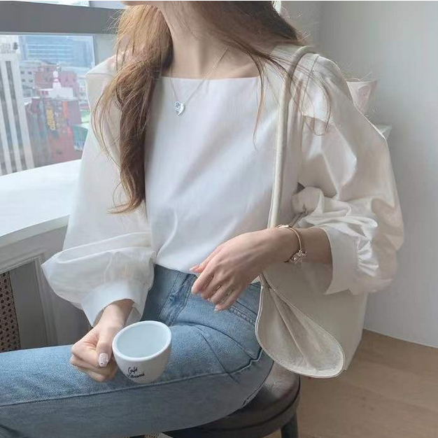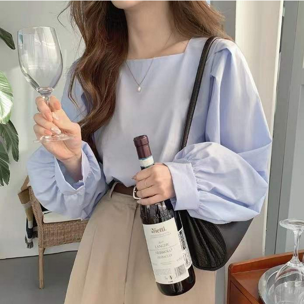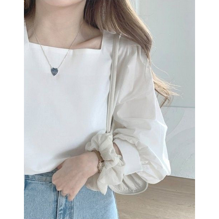 (พร้อมส่งจากไทย) เสื้อแขนยาวทรงหลวมใส่สบายคอเหลี่ยม [H2]
