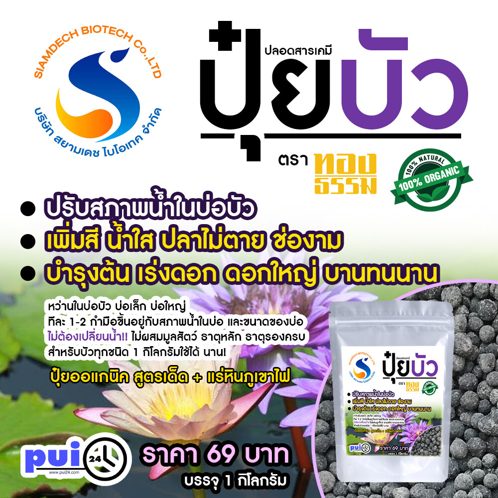 ปุ๋ยบัว ปรุงพิเศษ ดอกดก สีสด ปุ๋ยออแกนิค ไร้กลิ่น สำหรับหว่าน น้ำใส ปลาแข็งแรง แทบไม่ต้องล้างบ่อ ผสมแร่หินภูเขาไฟ ปุ๋ยยี่สิบสี่ !!