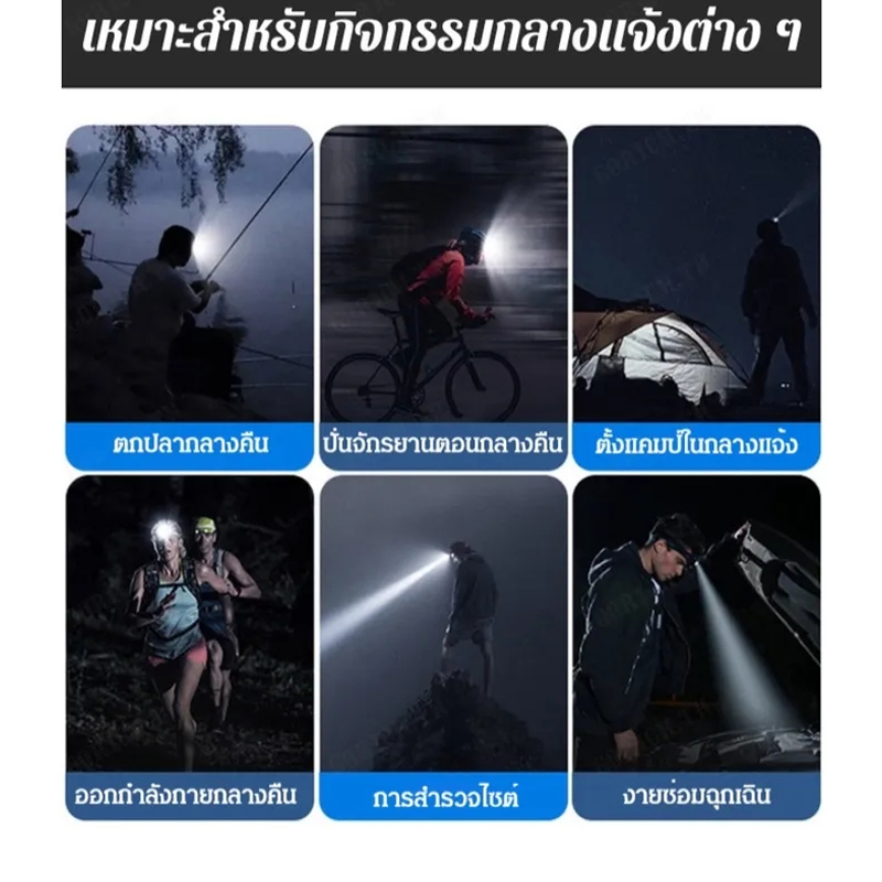 ไฟฉายคาดหัว ไฟฉายแรงสูง ไฟส่องกบ เซ็นเซอร์โบกมือ แท้ led แรงสูง มีการรับประกัน ไฟคาดหัว ไฟส่องสัตว์ Rechargeable Sensor
