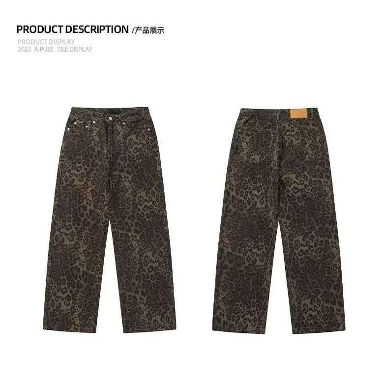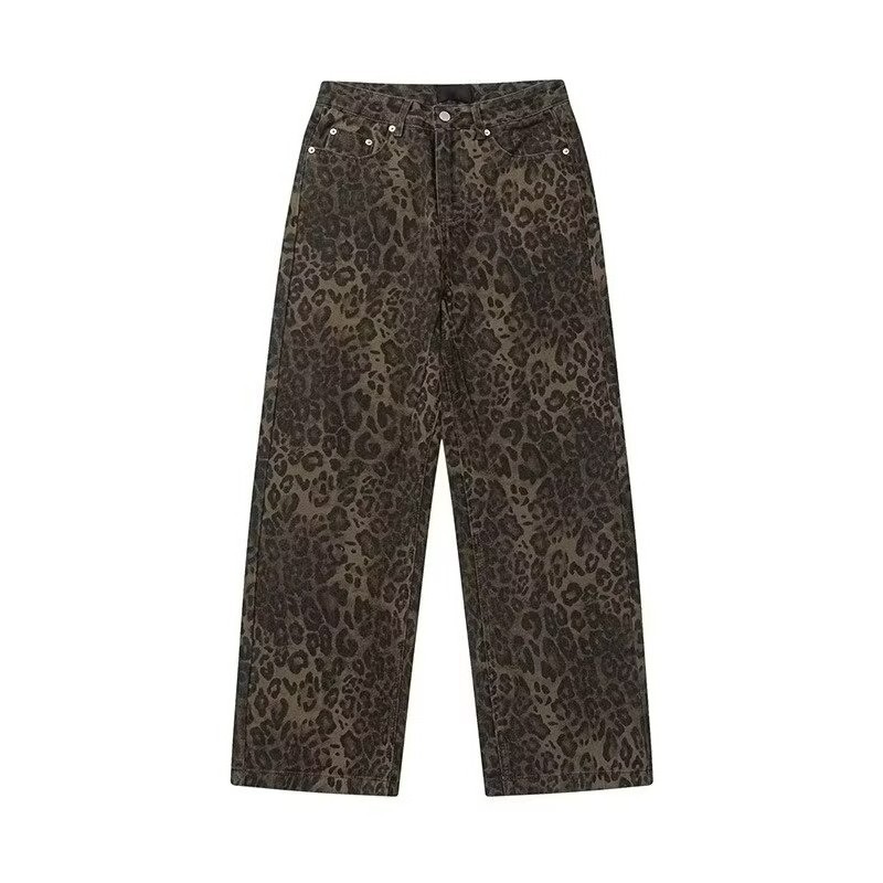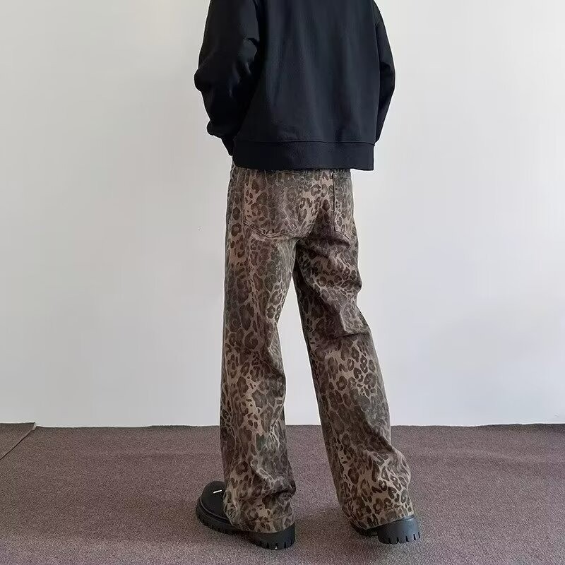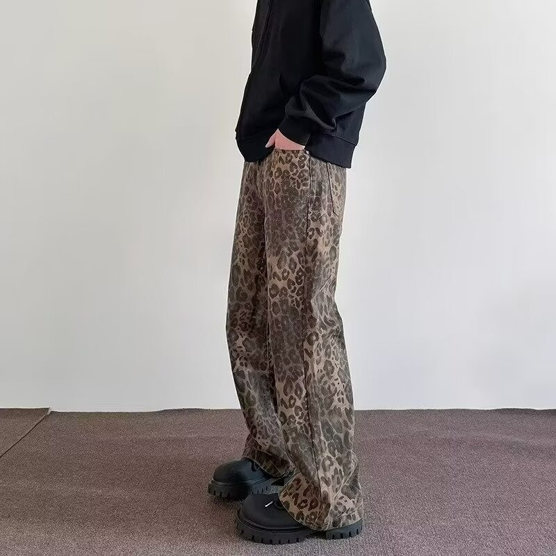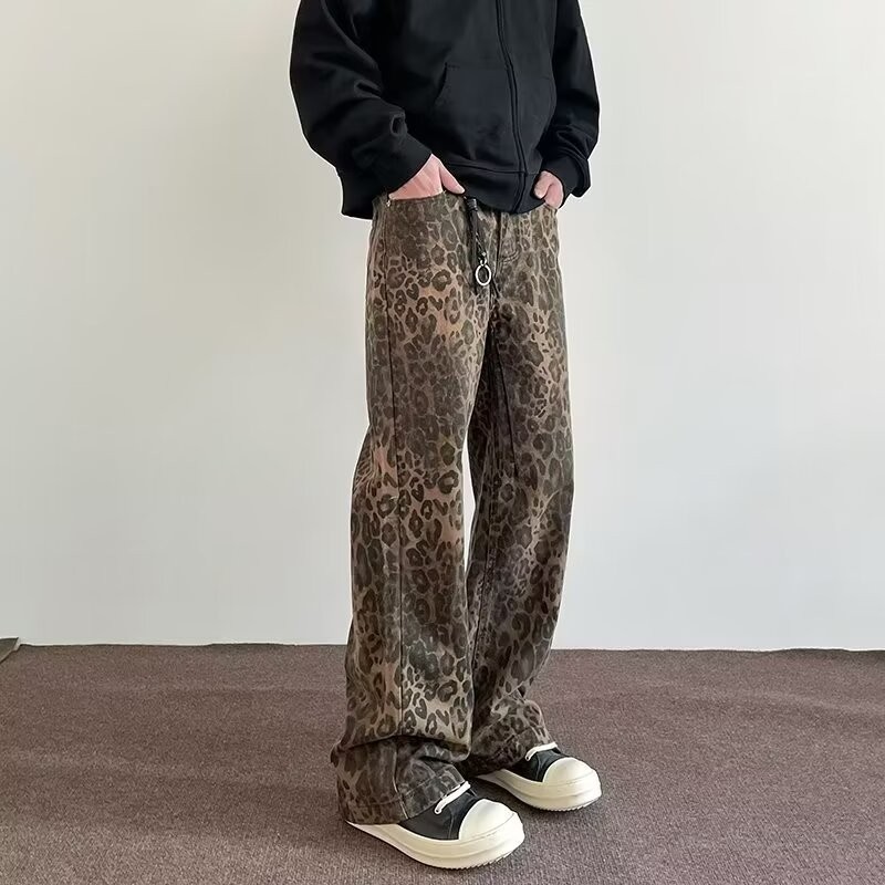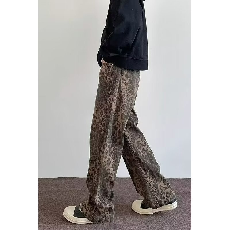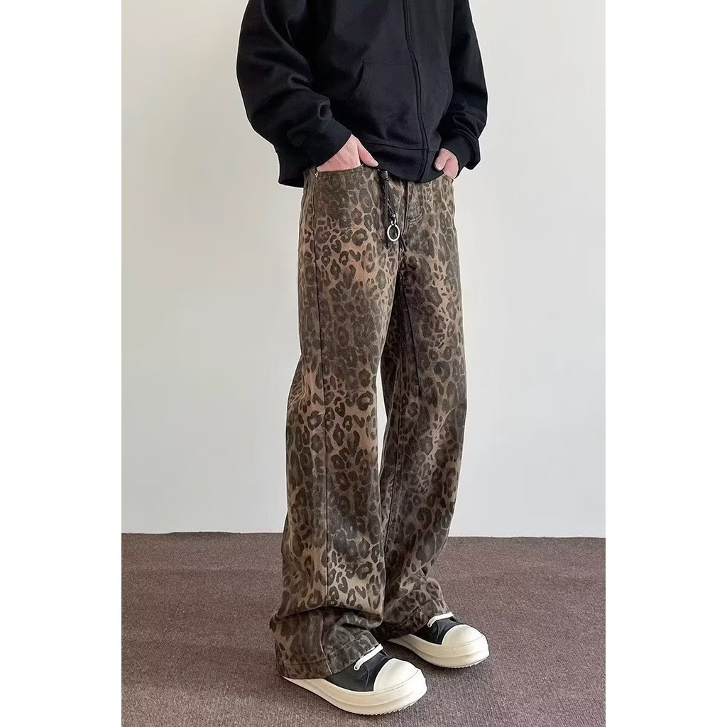 กางเกงยีนขายาวลําลอง ทรงหลวม พิมพ์ลายเสือดาว สําหรับผู้ชาย