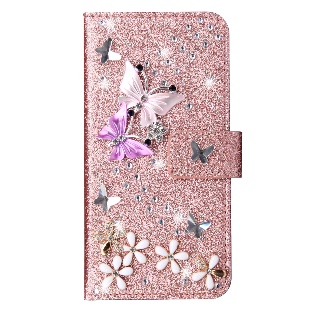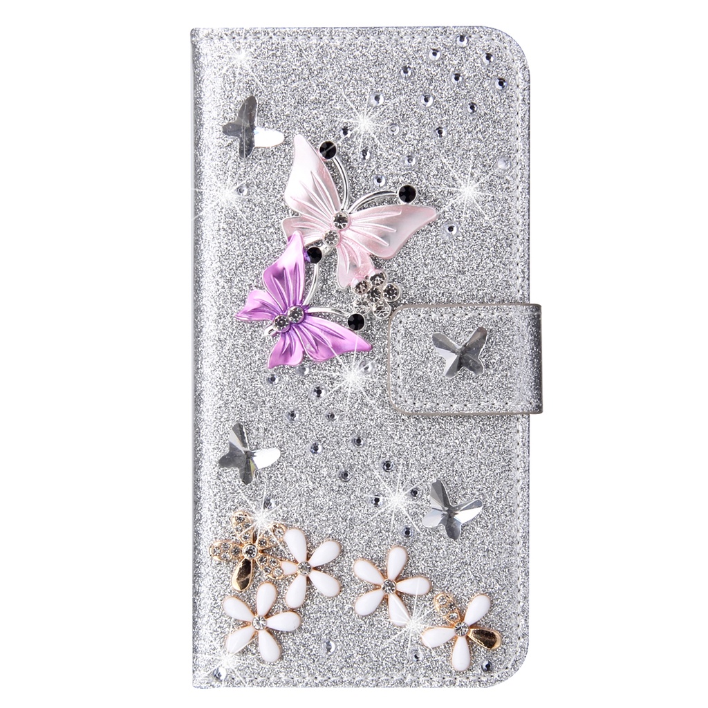 ซองหนังหรูหราสําหรับ iPhone Air 14 15 16 17 Pro Max เพชรผีเสื้อผู้ถือเงินสดกระเป๋าสตางค์กรอบฝาครอบแม่เหล็ก