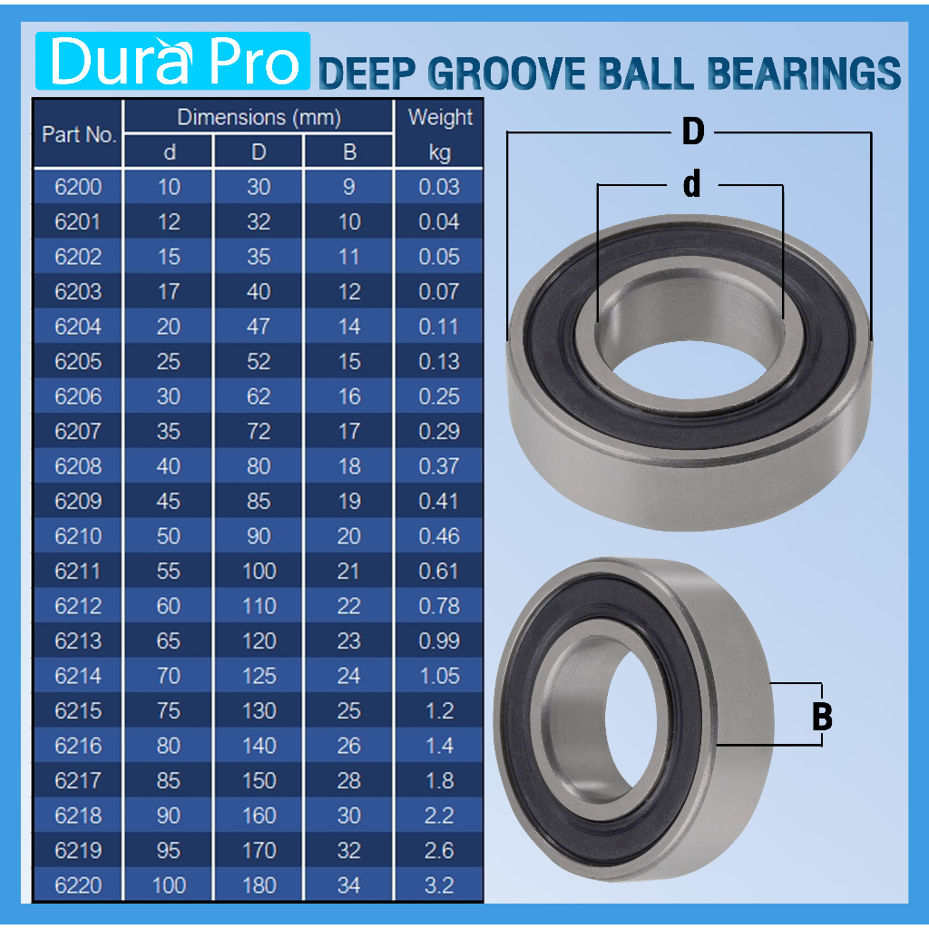 6200-2RS Dimension : d= 10 D= 30 B= 9 mm