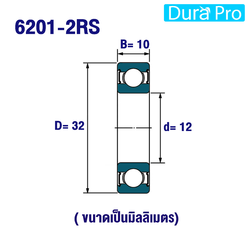 6201-2RS Dimension : d= 12 D= 32 B= 10 mm