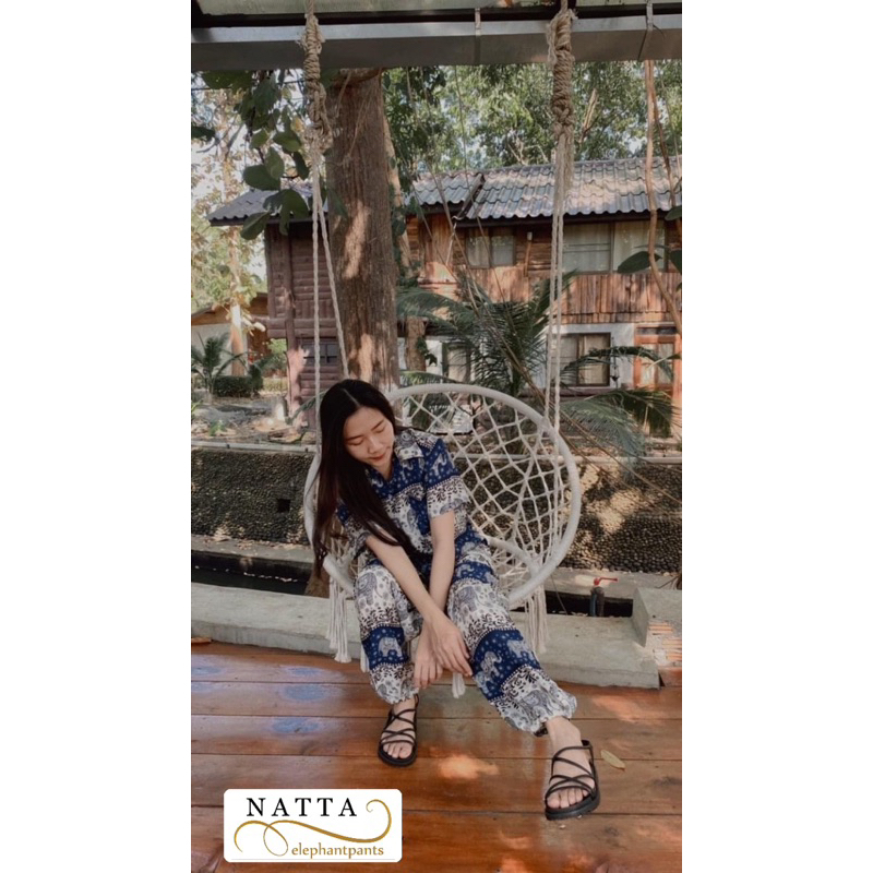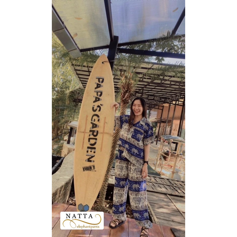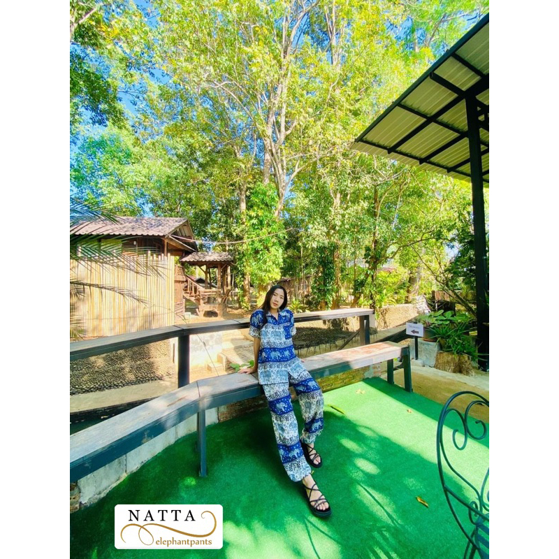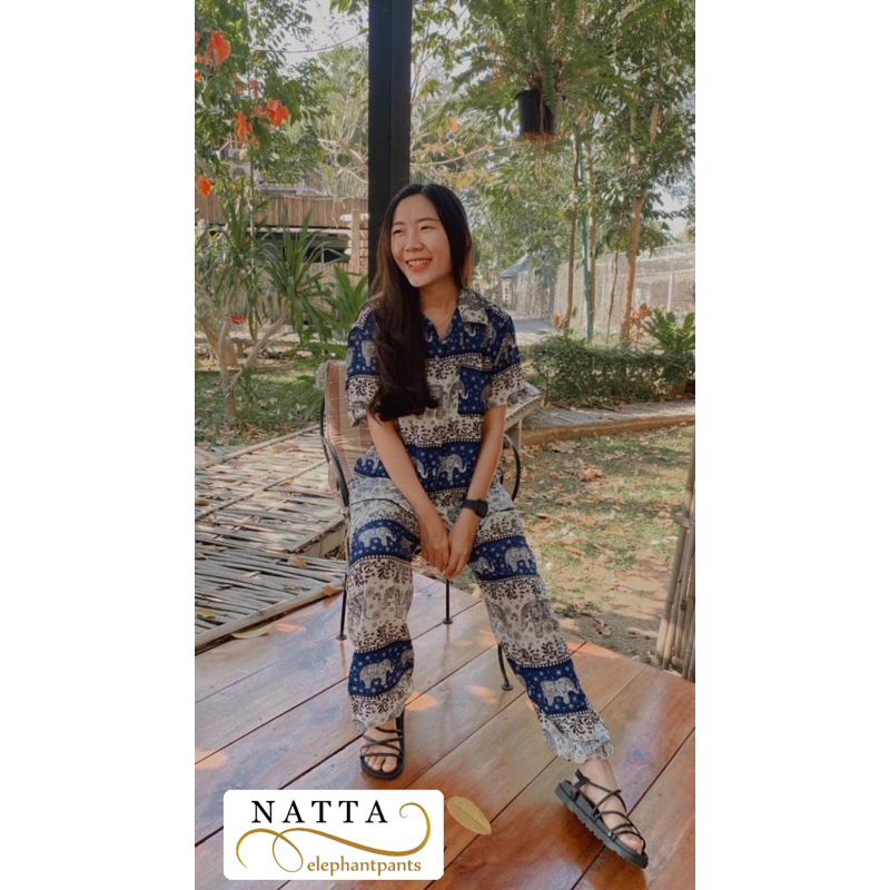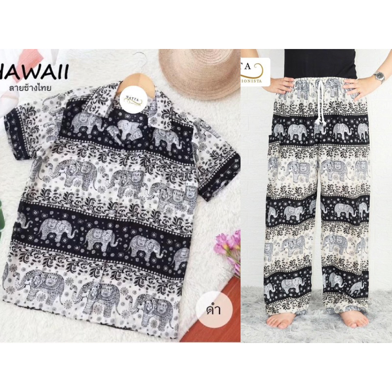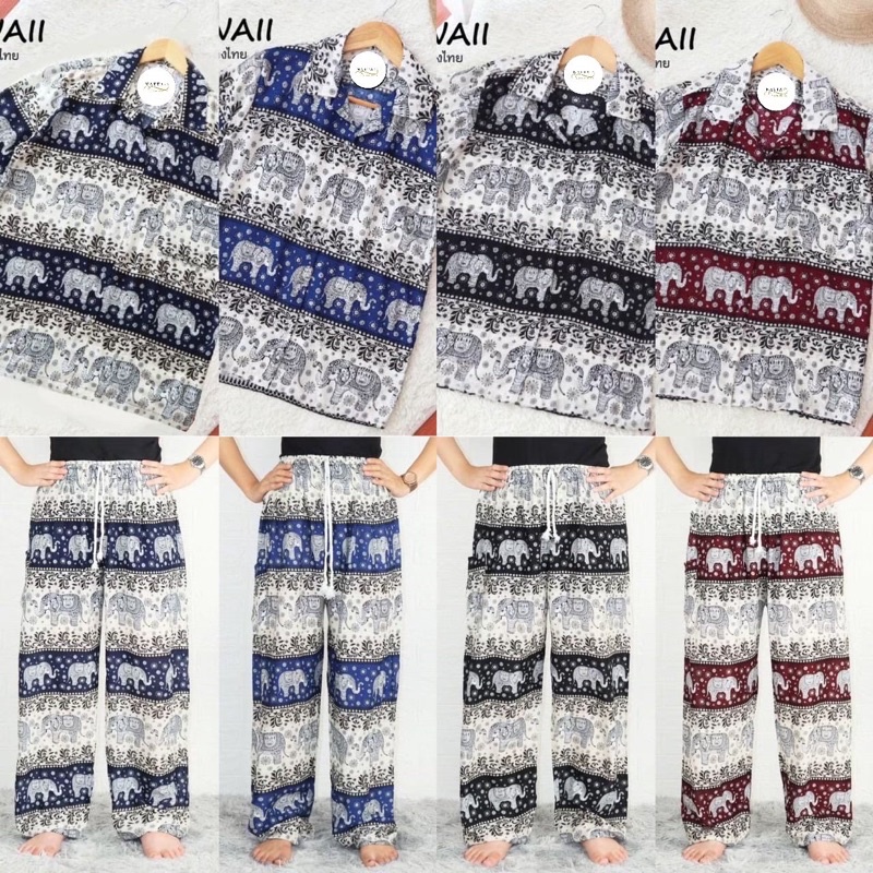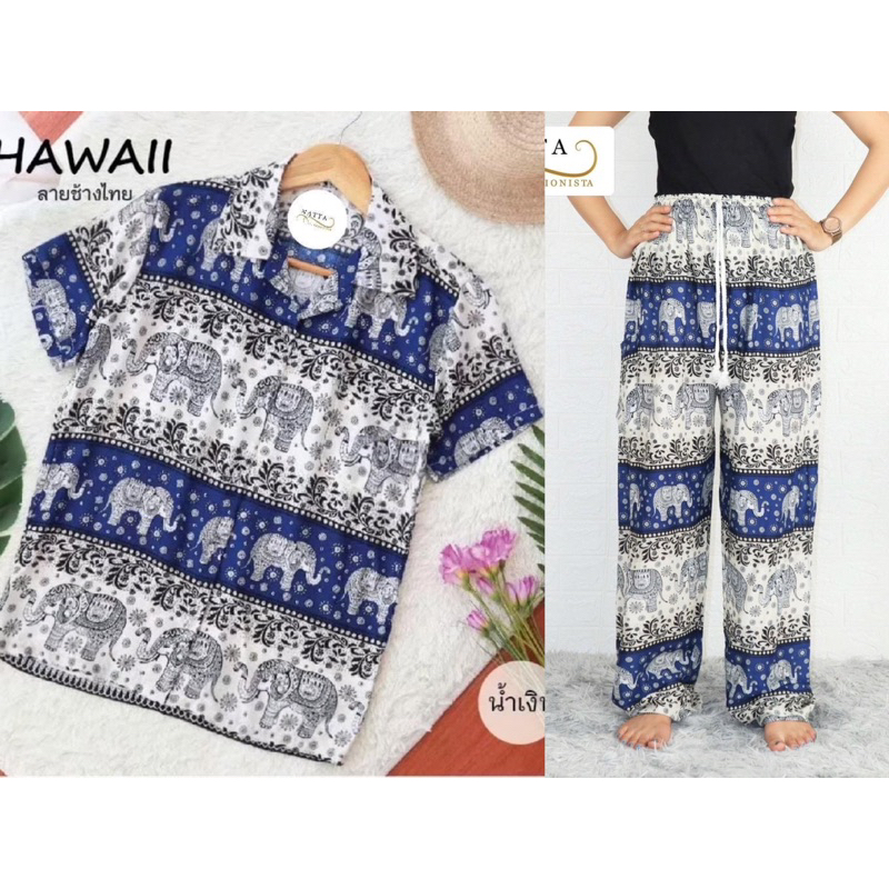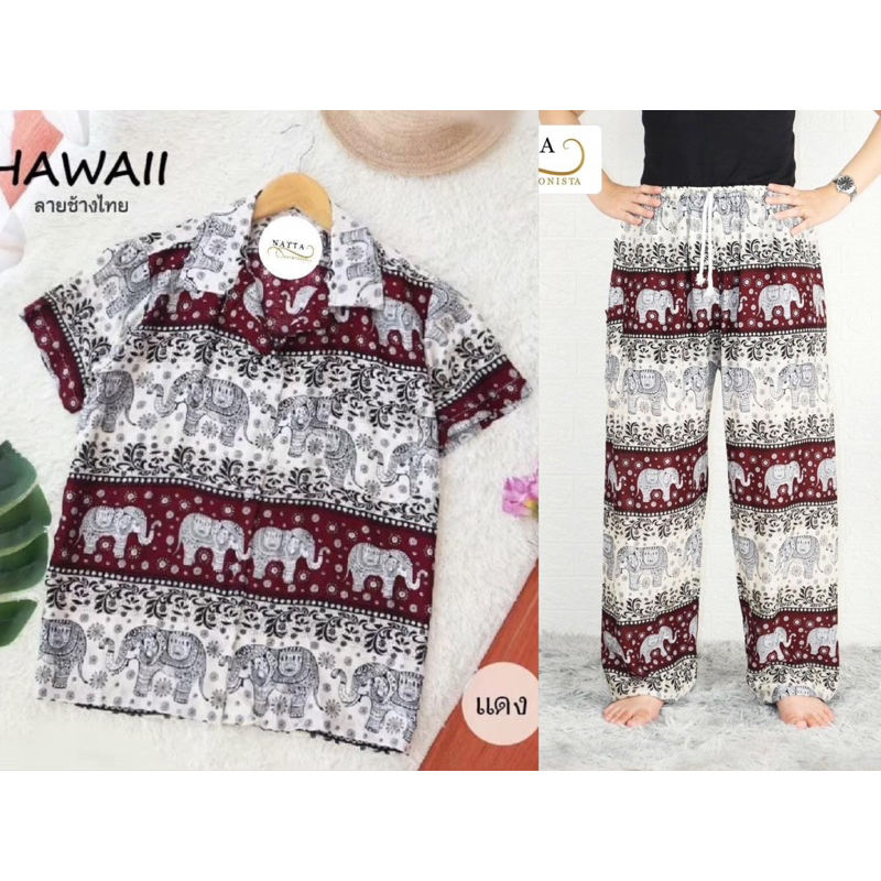 ชุดเซ็ตเสื้อฮาวาย+กางเกงช้าง(ลายช้างไทย)ผ้าเรย่อน ใส่สบาย พร้อมส่ง(ทั้งเซ็ต)
