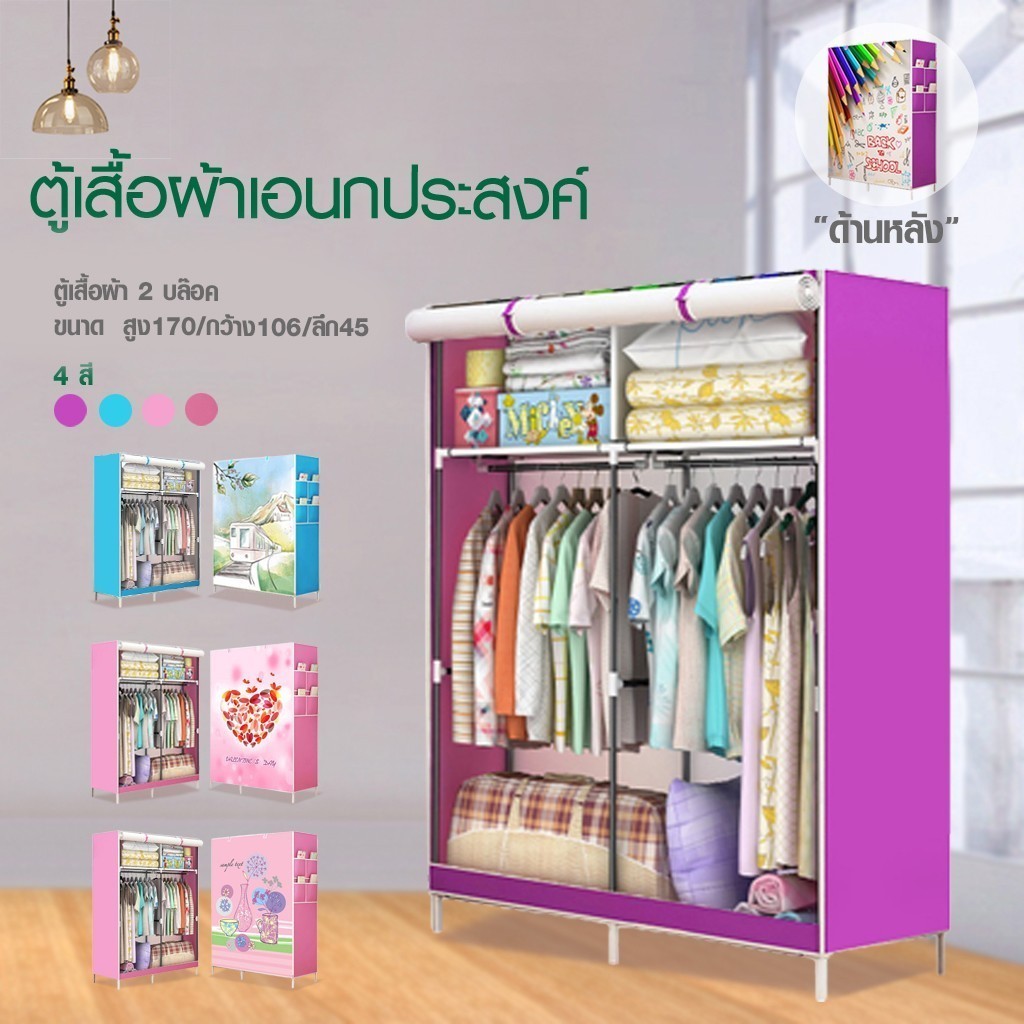 【 ส่งไว-ภายในวัน 】HOMMY ตู้เสื้อผ้า มินิมอล ผ้าคลุมหนากว่าเดิม เหล็ก 13 mm. จุได้ 60 กิโล WD5..