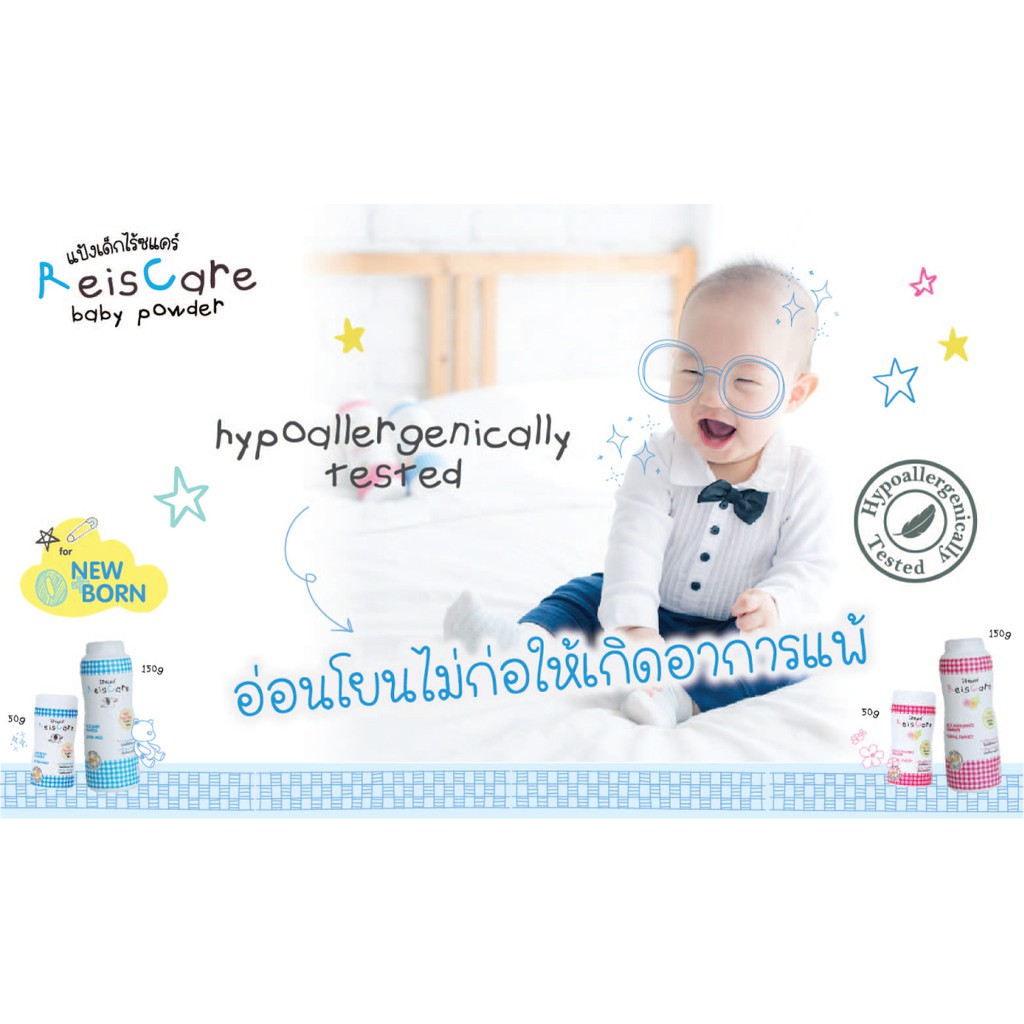 ผลิตภัณฑ์แป้ง ReisCare มีเนื้อแป้งที่ขาวเนียนละเอียด ปราศจากส่วนผสมของแป้งทัลคัม (Talc) เพราะแป้งReisCare ผลิตจากแป้งข้าวบริสุทธิ์ ผ่านกระบวนการผลิตและฆ่าเชื้อด้วยกรรมวิธีทันสมัย สะอาดปลอดภัย ไม่ทำให้ระคายเคืองต่อผิวที่บอบบาง และยังไม่ก่อให้เกิดอาการแพ้ (