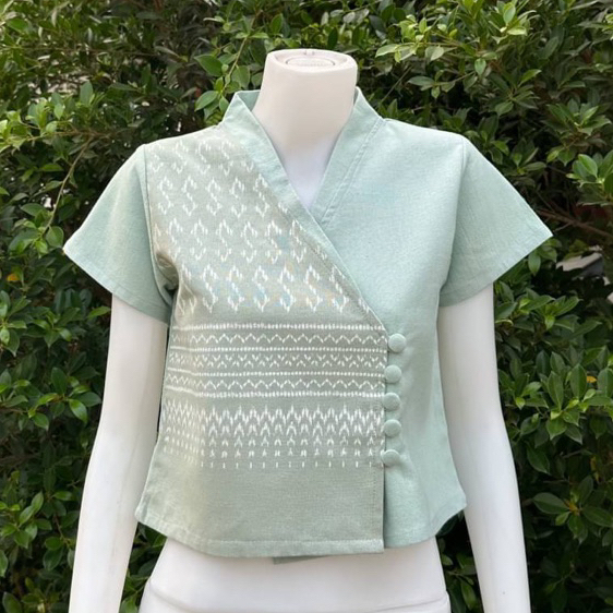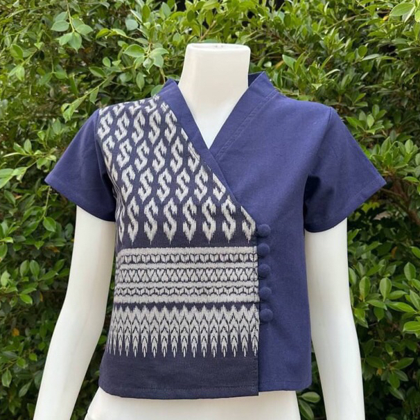 เสื้อพื้นเมืองผู้หญิง ลายขอทูโทน กระดุมป้าย