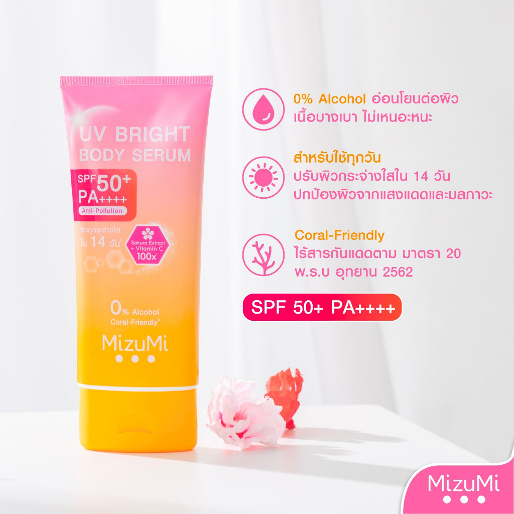 [2 หลอด] เซรั่มกันแดด MizuMi UV Bright Body Serum SPF50+ มิซึมิ ยูวี ไบรท์ บอดี้ เซรั่ม [180 ml.] ทาตัว