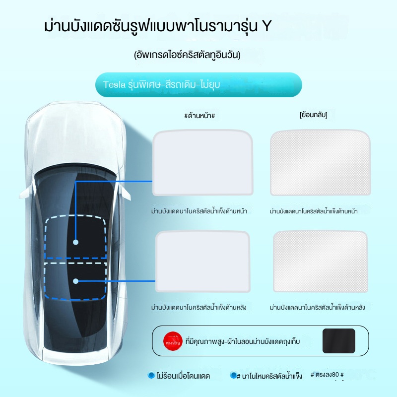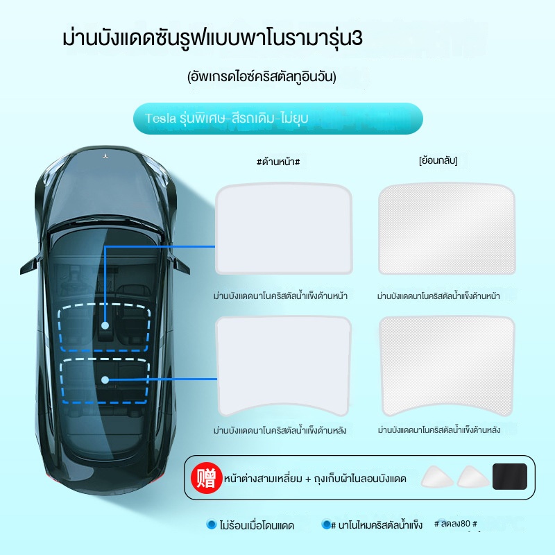 เทสลTeslaม่านบังแดดหลังคาสําหรับ Model Y/3 พร้อมฉนวนกันร้อน ติดตั้งง่ายไม่ทำให้เกิดเสียงเวลาขับรถ พอดีกับหลังคาแก้วTesla