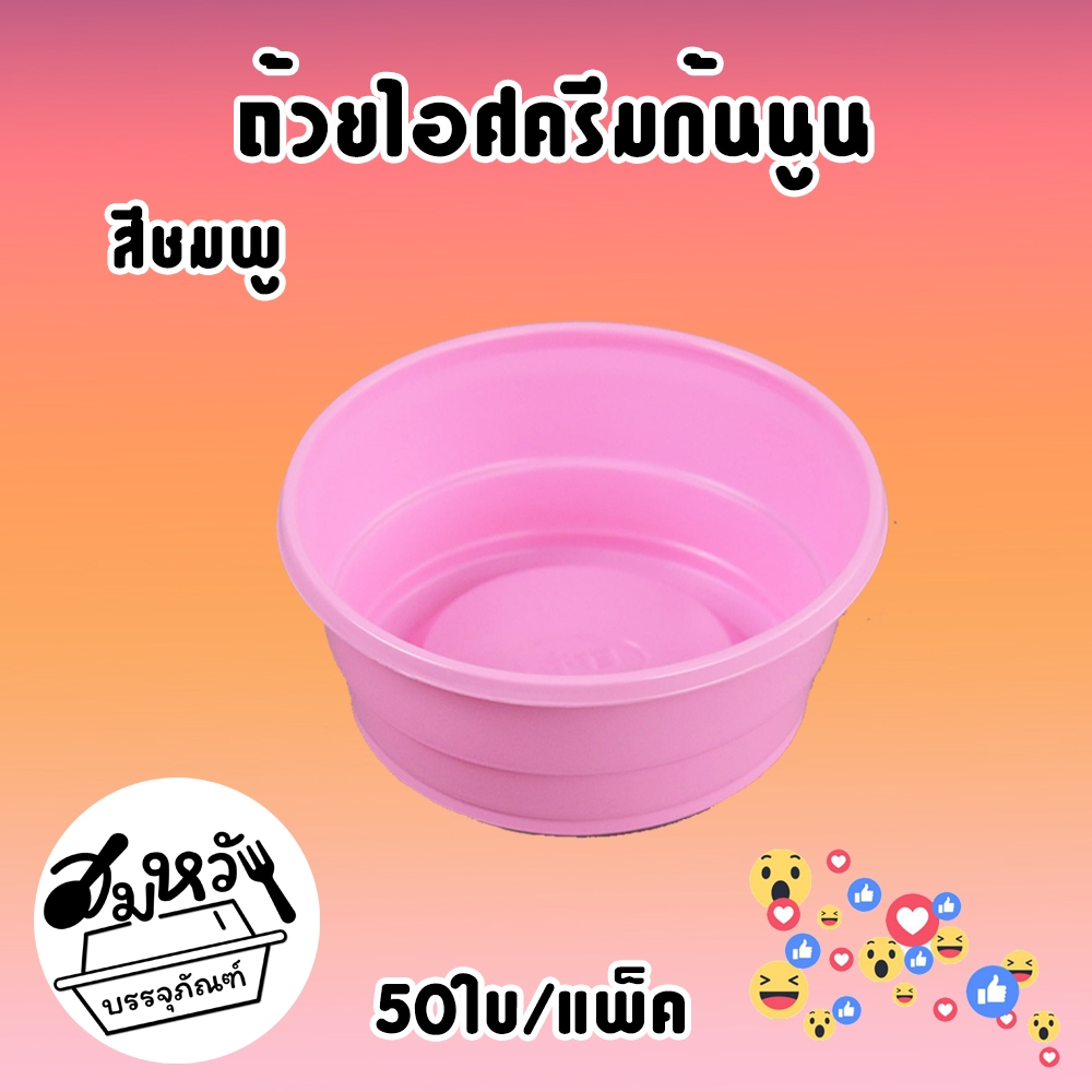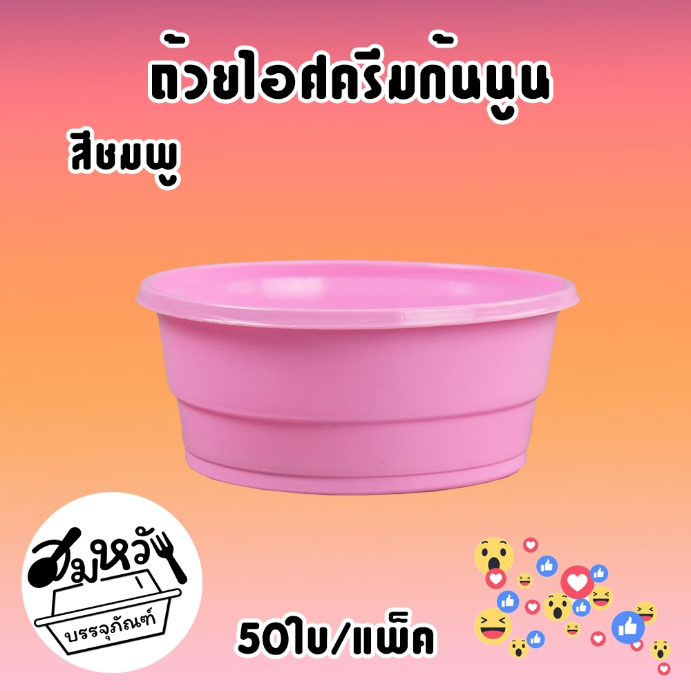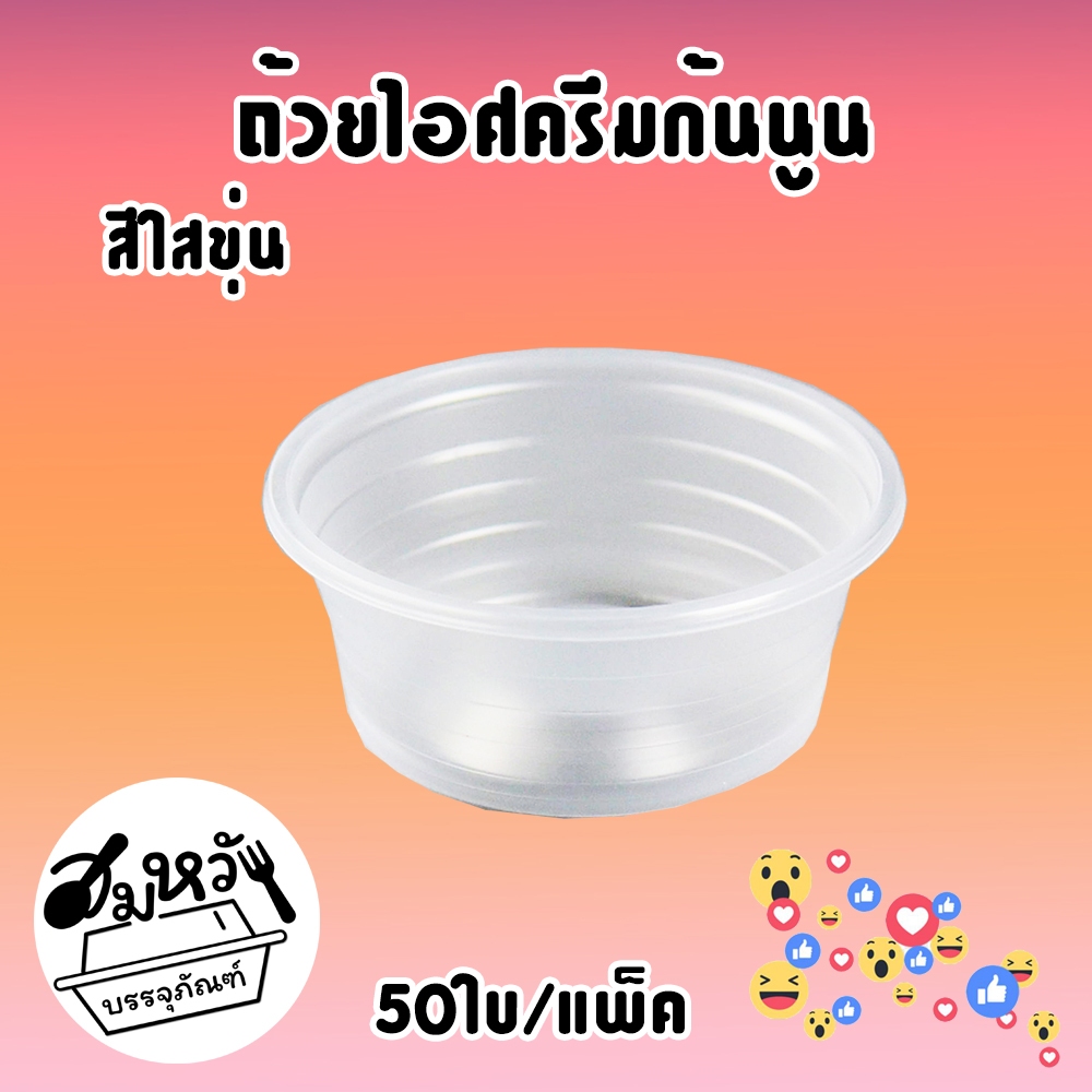 ถ้วยพลาสติก ถ้วยไอติมก้นนูนสีชมพู สีขาว สีใสขุ่น
