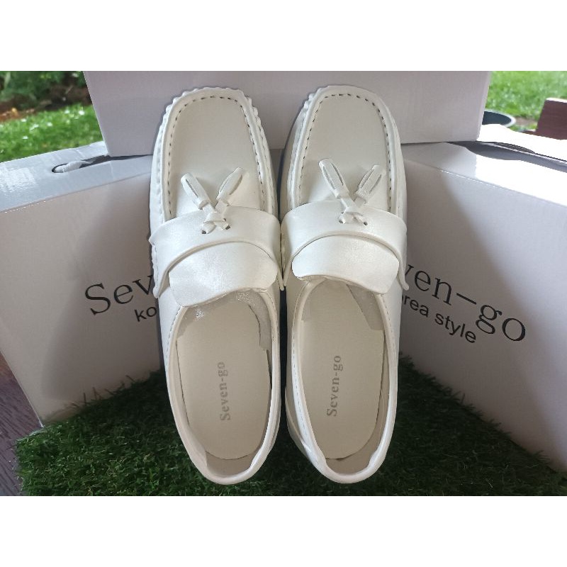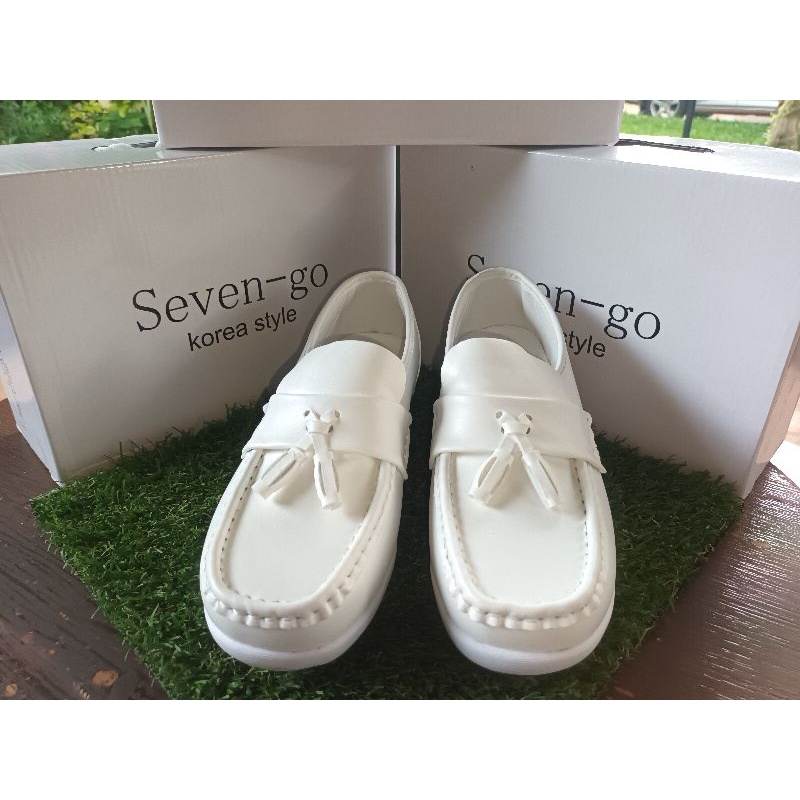 "รองเท้าหนังขาว รองเท้าหนังสตรี รองเท้าหนังขาวเสริมส้น"