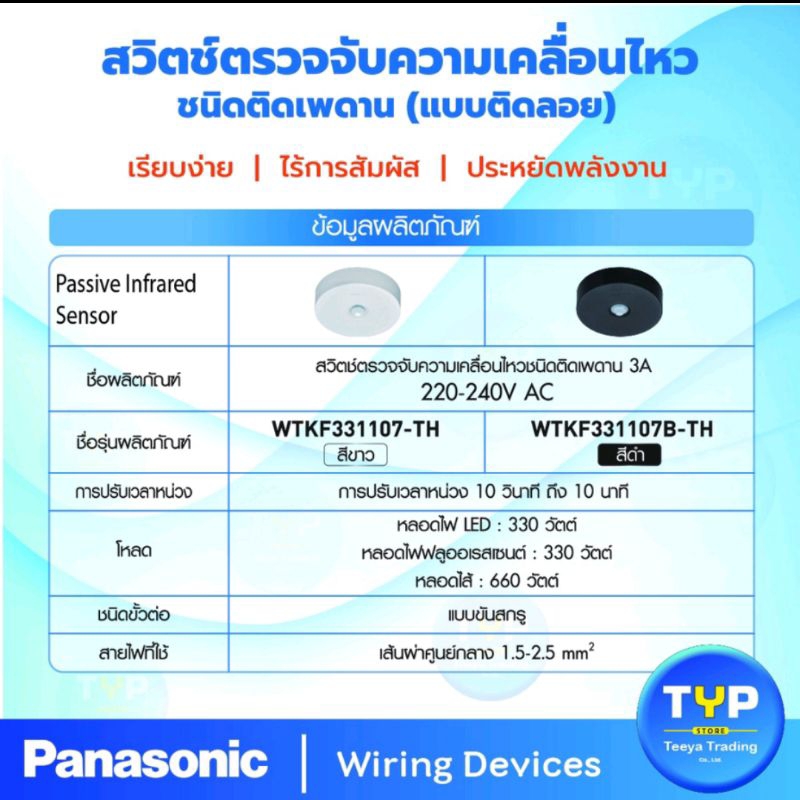 Panasonic Motion Detector Light สวิทช์ตรวจจับความเคลื่อนไหว (Passive Infrared Sensor)PANASONIC WTKF331107-TH สีขาว