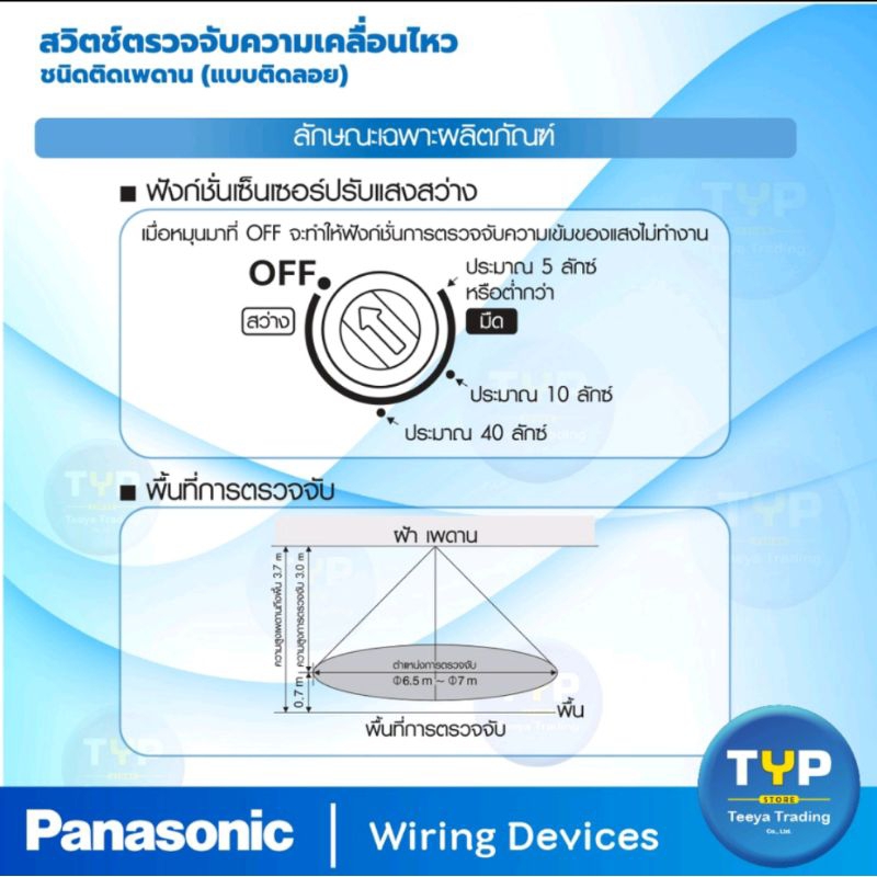 Panasonic Motion Detector Light สวิทช์ตรวจจับความเคลื่อนไหว (Passive Infrared Sensor)PANASONIC WTKF33110