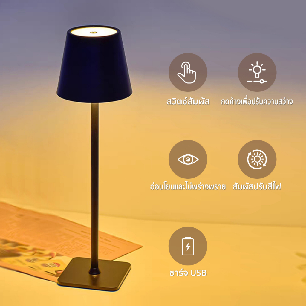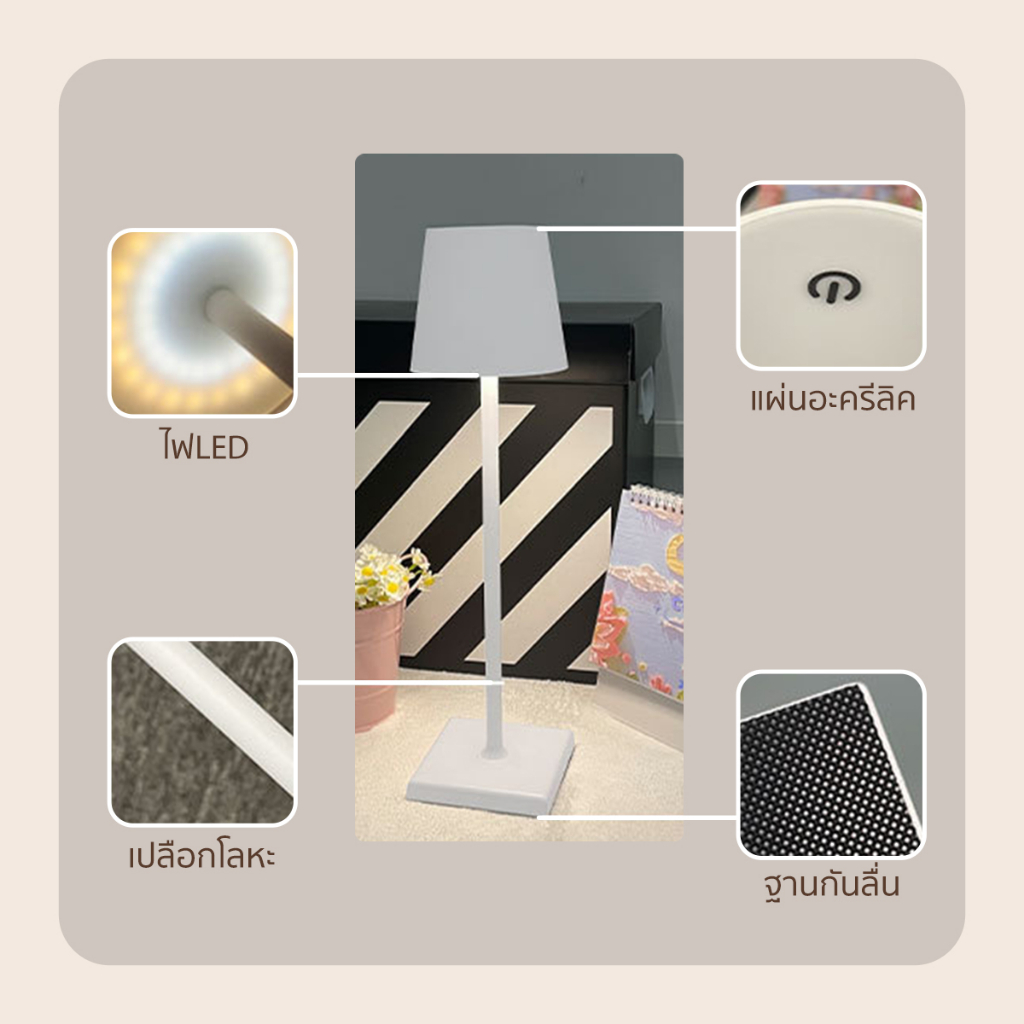 โคมไฟมินิมอล LED สไตล์โมเดิร์น/เรียบง่าย โคมไฟตั้งโต๊ะแบบทรงสูง หรี่แสงได้ สีขาว/ดำ ตกแต่งห้องนอน