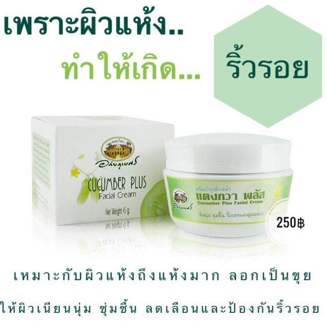 ครีมบำรุงผิวหน้าแตงกวาพลัส ☘️☘️อภัยภูเบศร ✅(ผลิตใหม่ล่าสุด)✅ขนาด 45 กรัม