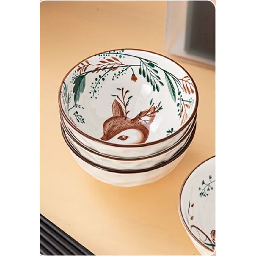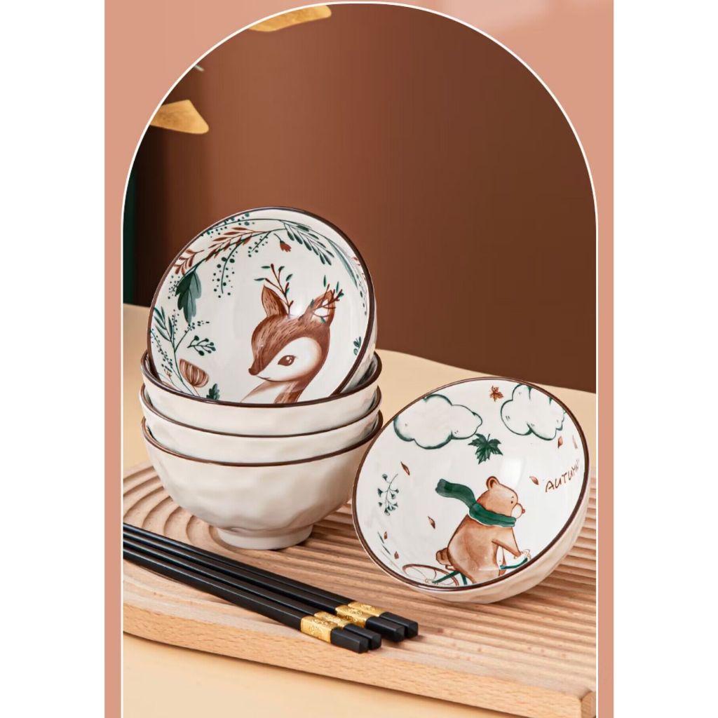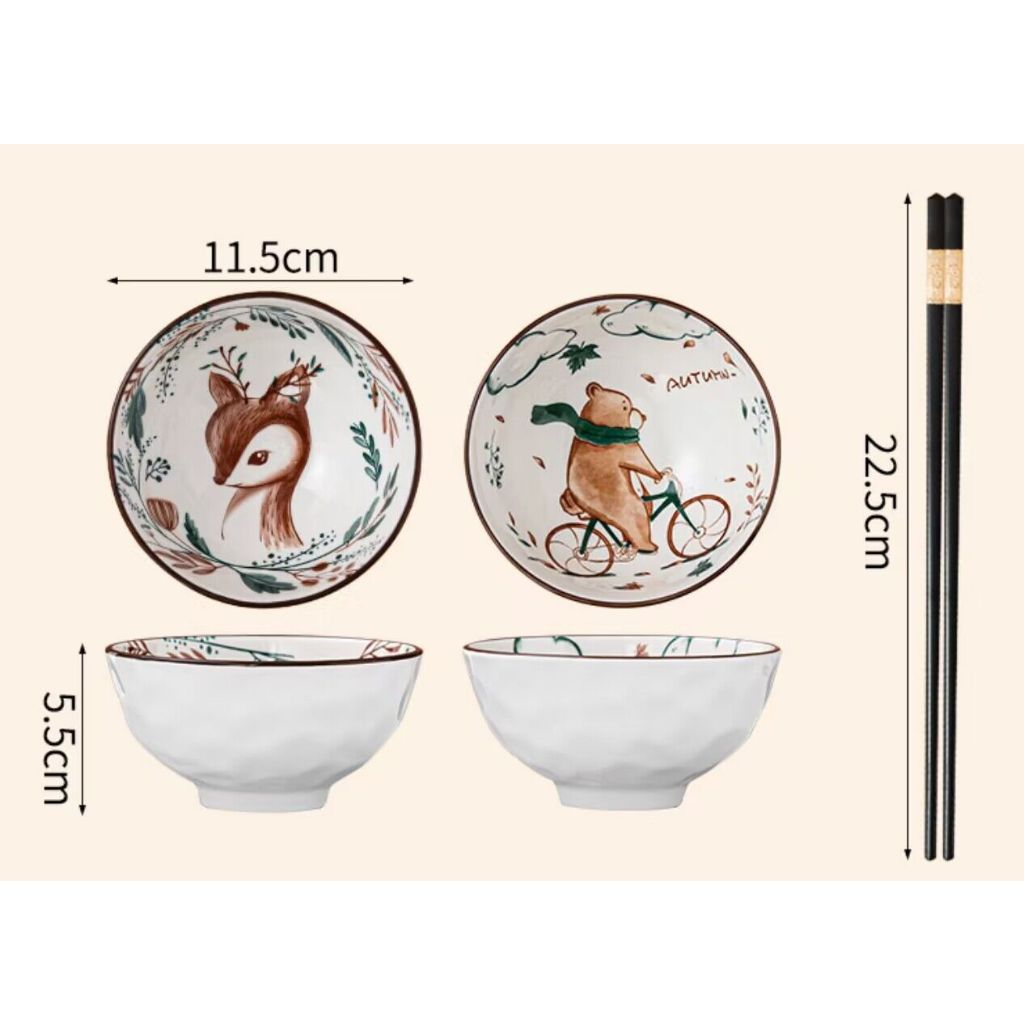 ชุดถ้วยเซรามิค ชุดถ้วยเซรามิกกว้าง4.5นิ้ว ถ้วยกินข้าวมีตะเกียบ เข้าไมโครเวฟได้ ถ้วยกระเบื้อง ชามมินิมอล
