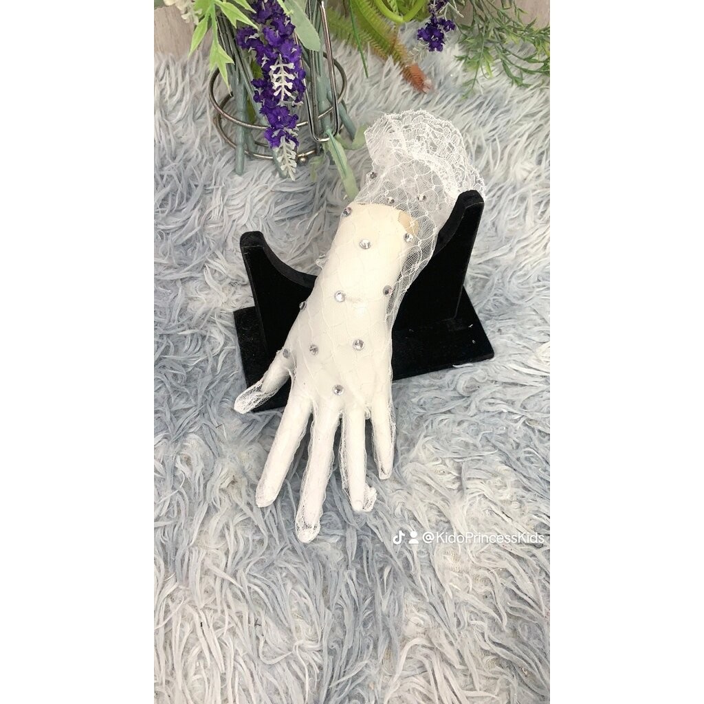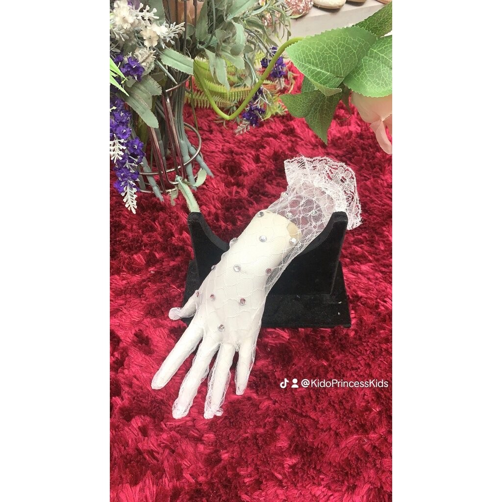 sถุงมือเด็ก(มีหน้าร้านอยู่รัชดา)GL029 สีขาว ถุงมือตาข่ายเพชรยาว