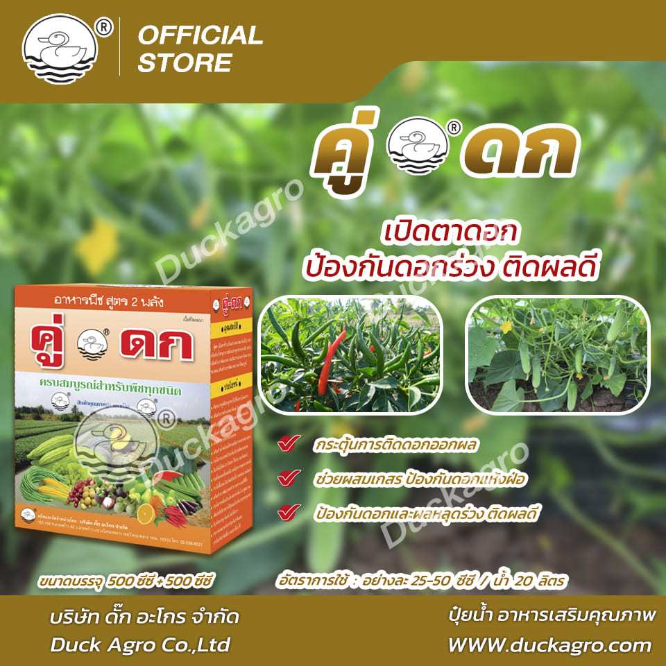 ปุ๋ยน้ำ คู่ดก ตราเป็ด เปิดตาดอก ป้องกันดอกร่วง ติดผลดี ขนาดบรรจุ 500+500cc