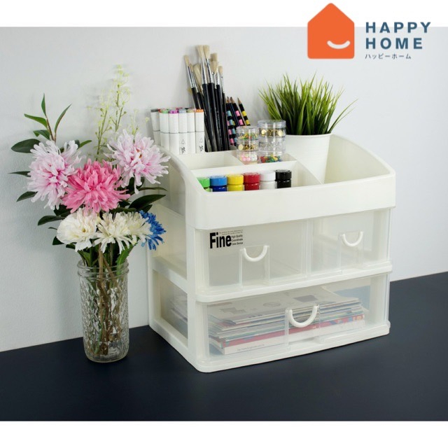 กล่องลิ้นชักอเนกประสงค์ 2ชั้น 3ช่อง ชั้นวางเครื่องสำอางค์ เครื่องเขียน รุ่น CA-543