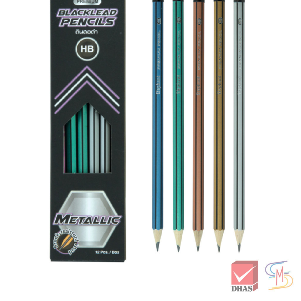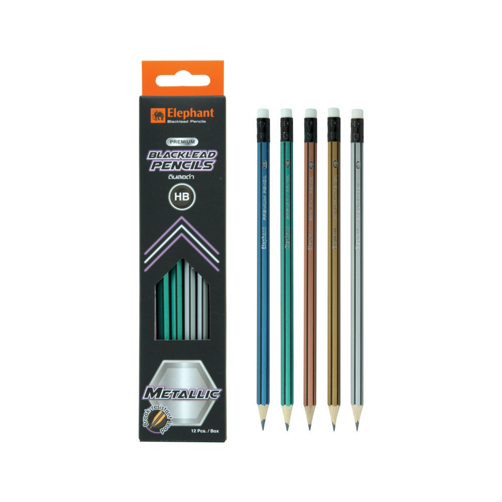 Elephant ตราช้าง ดินสอ ดินสอดำ เมทัลลิค HB พรีเมี่ยม P01 จำนวน 12 แท่ง