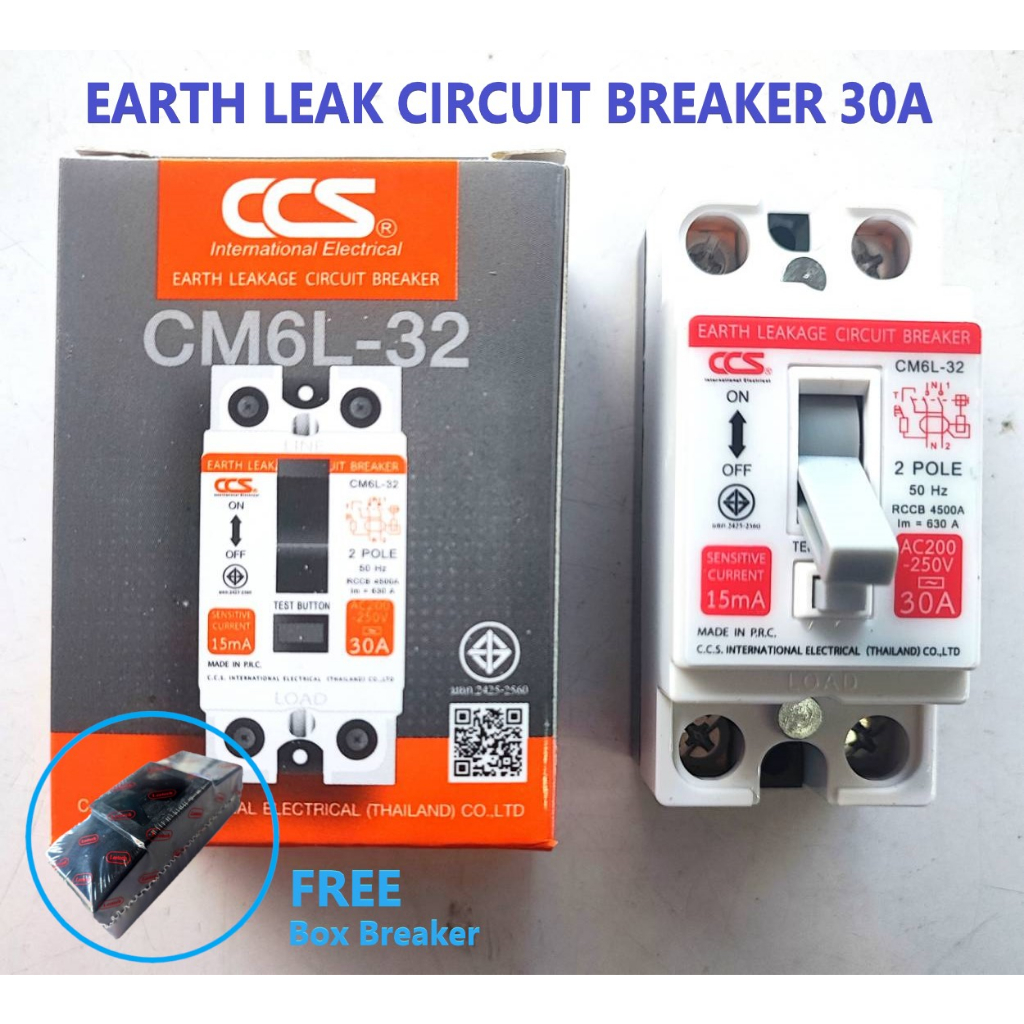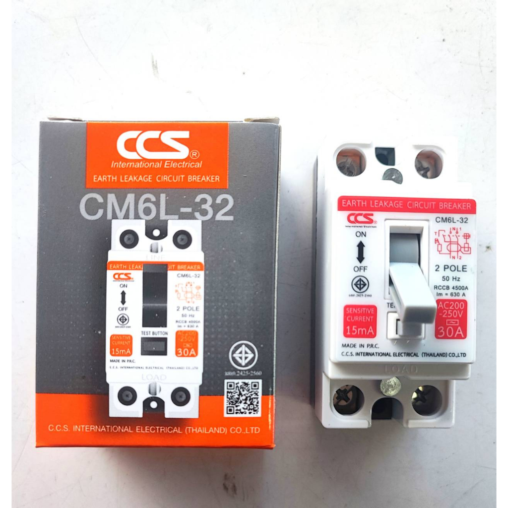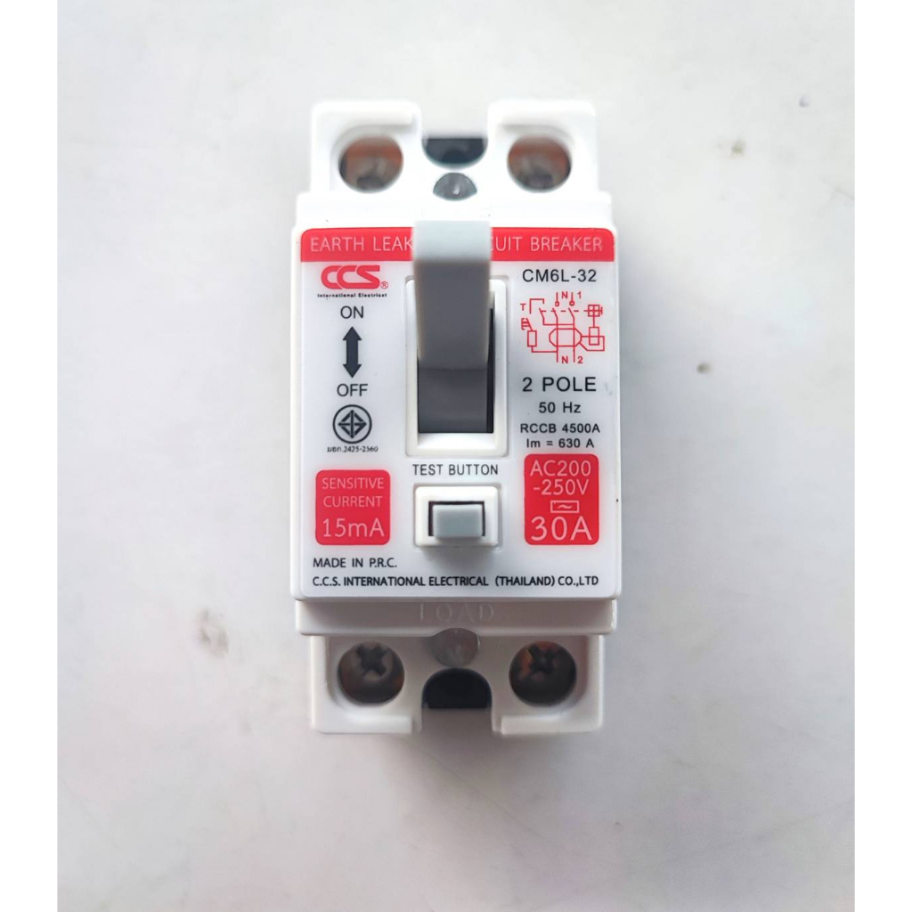 CCS เบรกเกอร์ กันไฟดูด ไฟรั่ว ไฟเกิน 30A ELCB ค่าความไวการตัดวงจร15mA Earth Leakage Circuit Breaker