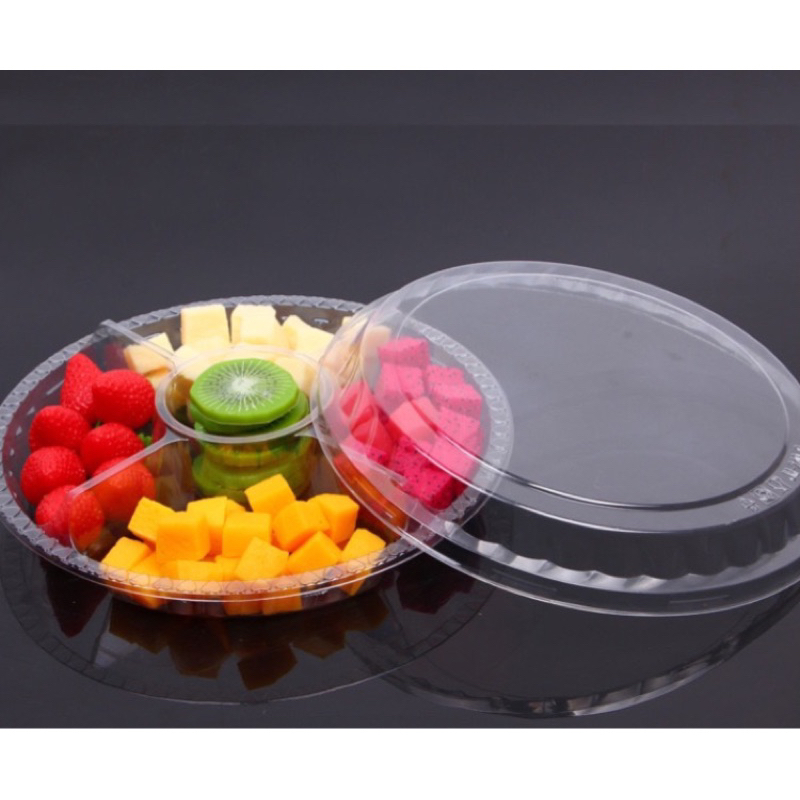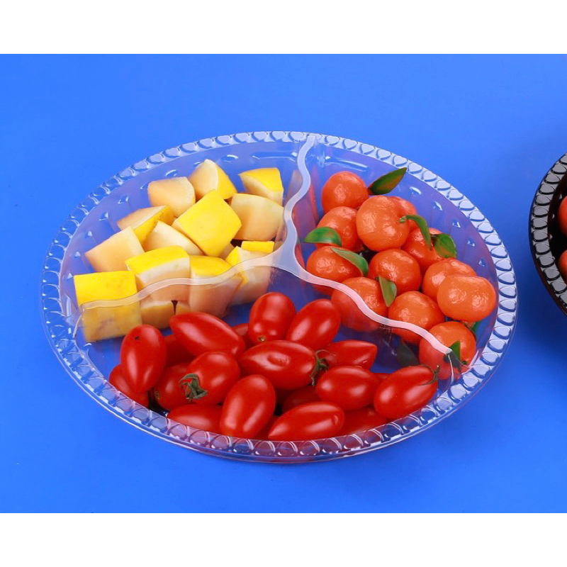 พร้อมส่ง (แพ็ค 10ใบ) ถาดวงแหวน ถาดสี่เหลี่ยม แบ่งช่อง ถาดใส่ผลไม้