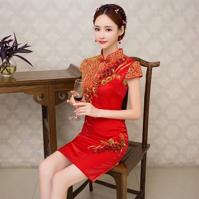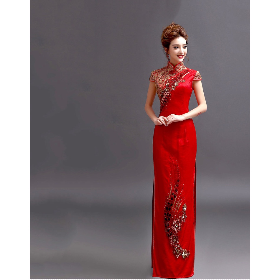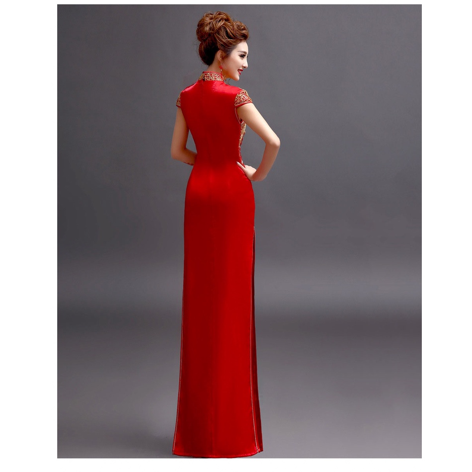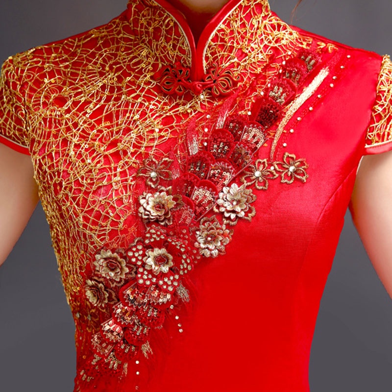 ชุดเดรสกี่เพ้า ปักลาย สีแดง สไตล์วินเทจ พลัสไซซ์ สําหรับผู้หญิง ไซซ์ XS ถึง 3XL 2023
