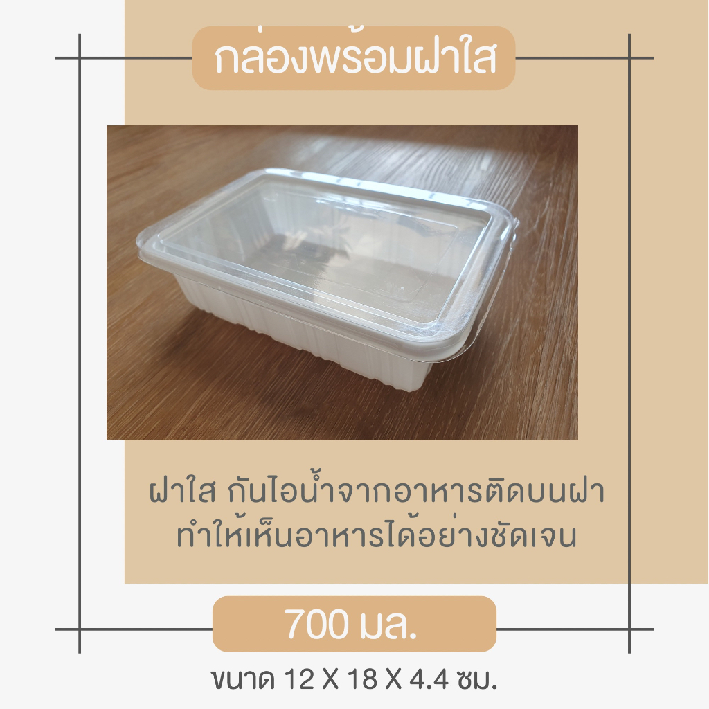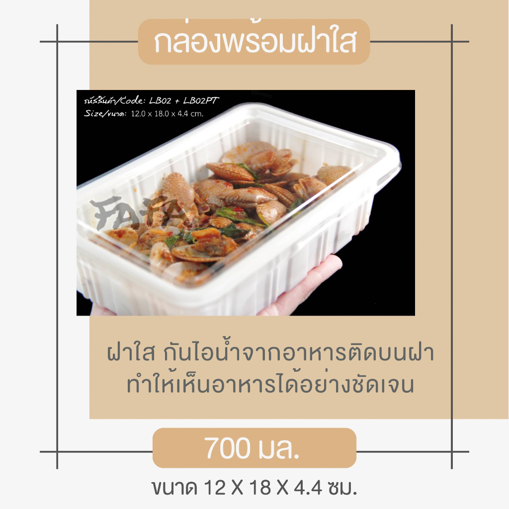 [พร้อมจัดส่งทันที][รวมฝา 25 ชุด] ถาดพลาสติก 700 มล. LB-02WP สีขาว + ฝาใสกันฝ้ากันไอน้ำ ถาดใส่อาหาร