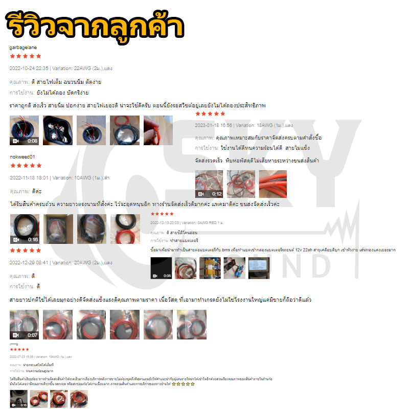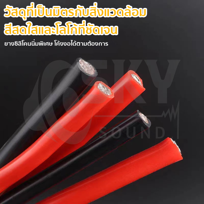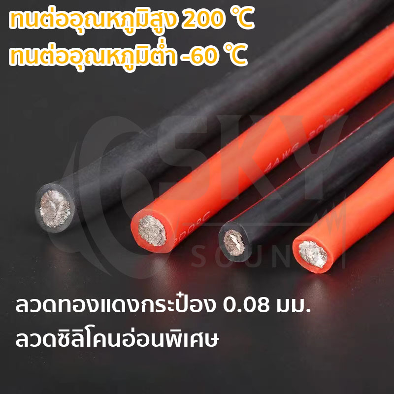 SKYSOUNDสายไฟซิลิโคน สายไฟทองแดง 100% แท้ สายอ่อน ทนความร้อนสูง 8awg 10awg 12awg 14awg 16awg 18awg 20awg Silicone 200องศ