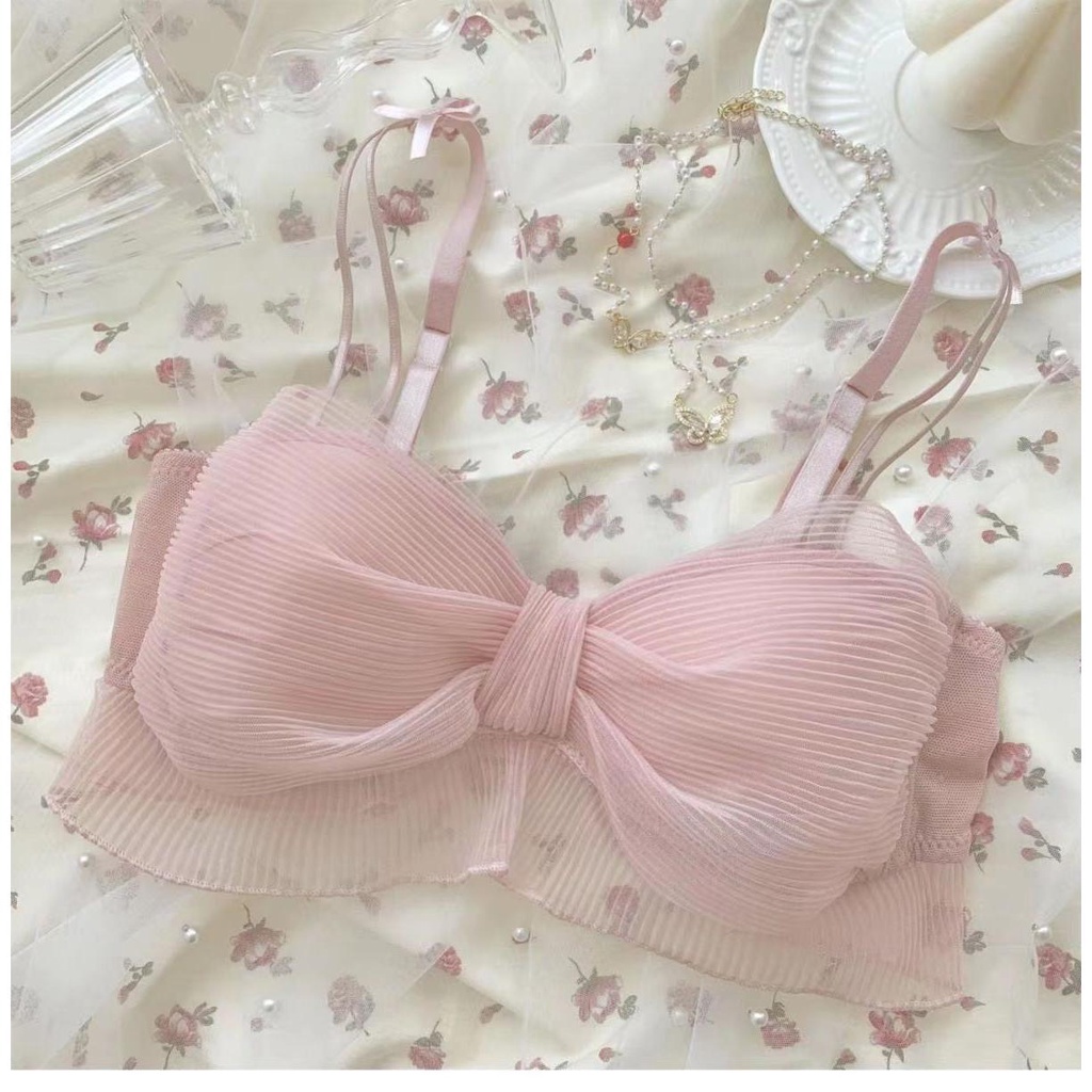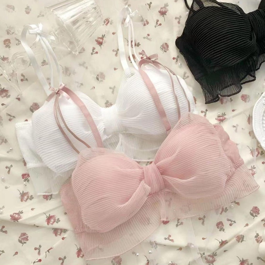ชุดชั้นใน ดันทรง ไร้สาย ประดับโบว์ ลูกไม้ เซ็กซี่ สําหรับผู้หญิง