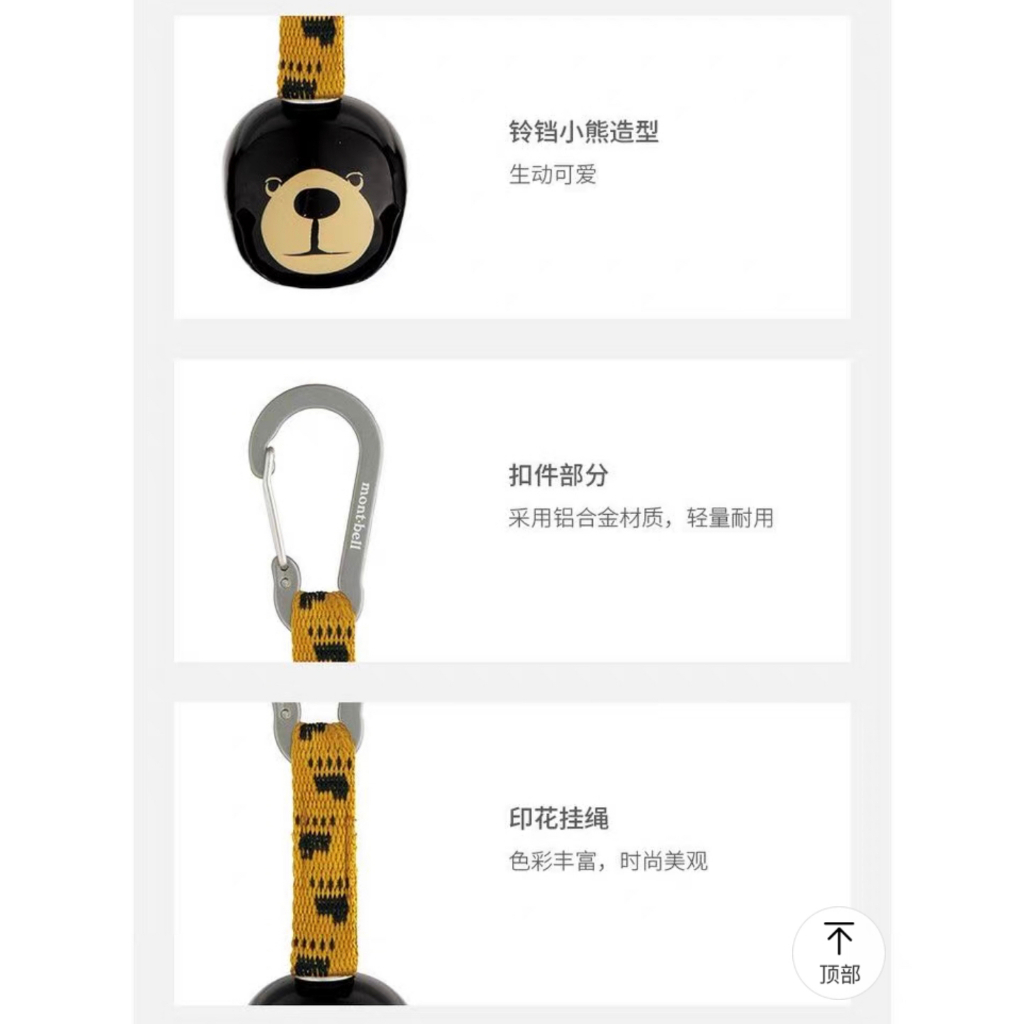 ออกแบบมาเพื่อแจ้งเตือนตัวของคุณต่อสัตว์ป่าและเพื่อนร่วมทาง มาพร้อมกับคาราบิเนอร์ทำให้ง่ายต่อการติดกับกระเป๋าเป้หรือห่วงเข็มขัดที่กางเกงของคุณ โดดเด่นด้วยลายพิมพ์ของหมีMONTAและสายคาดแบบเต็มสี