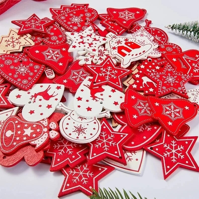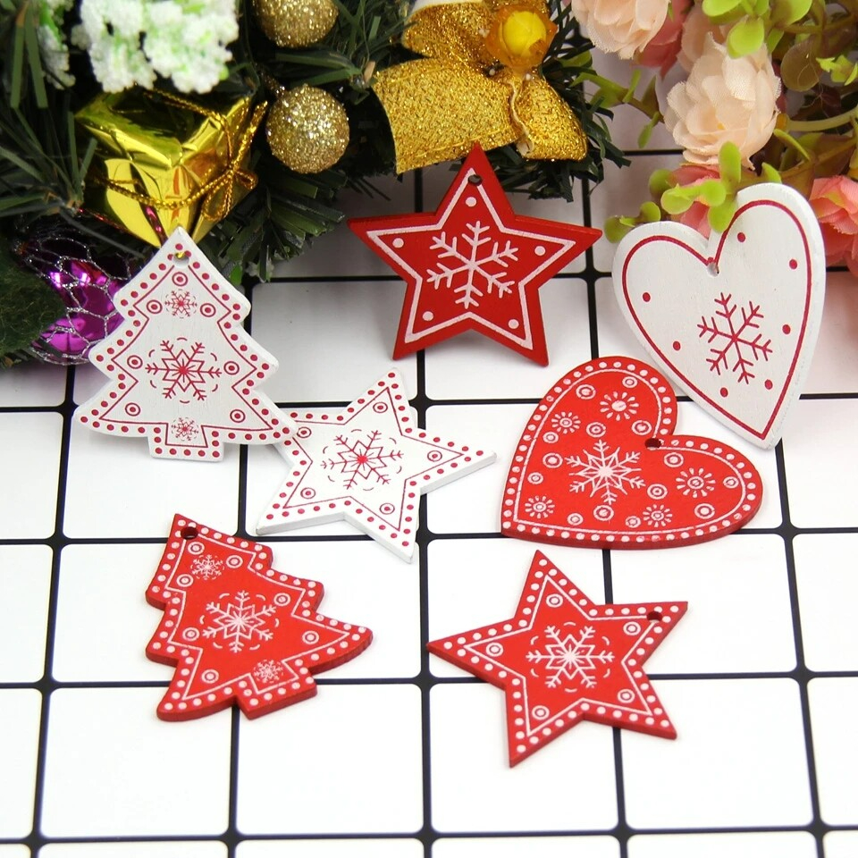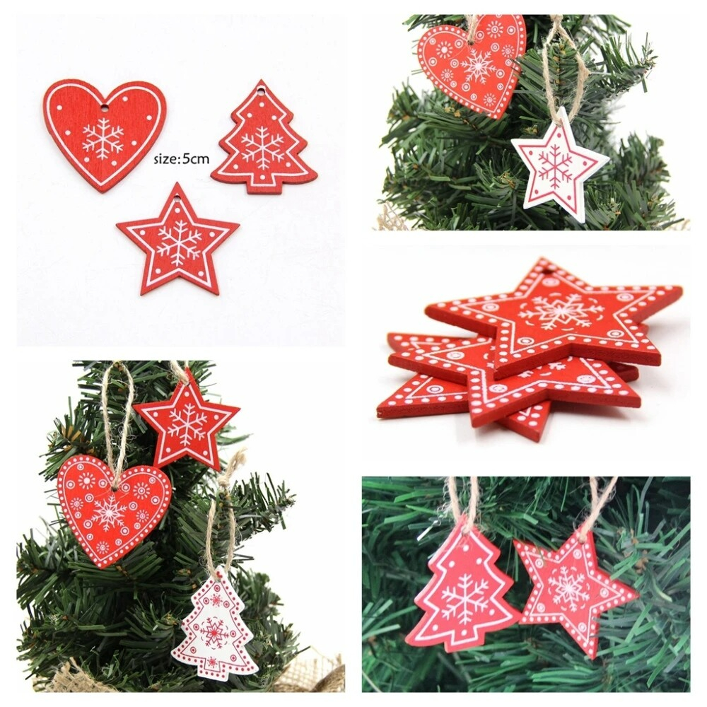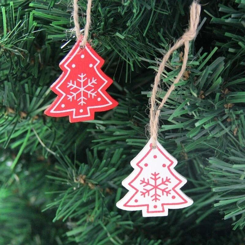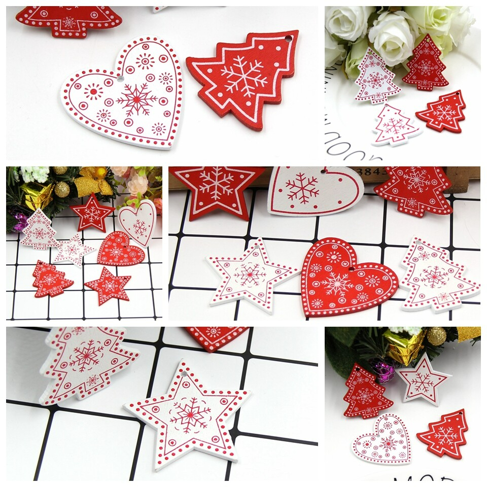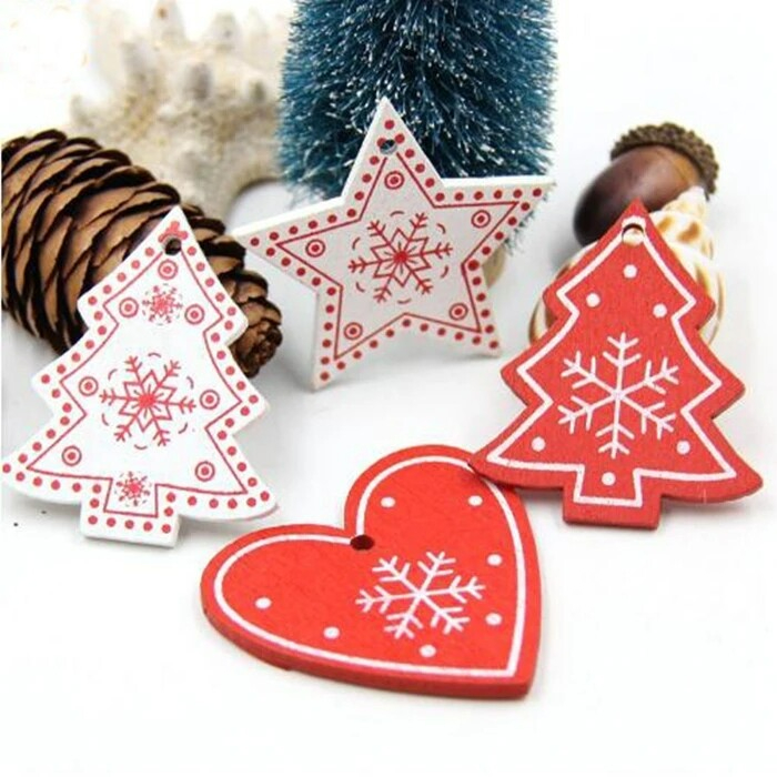 Made of high quality wood material, durable and eco-friendly. Christmas tree/snowflake/heart shape will enhance festive atmosphere. Easy to hang on the Christmas tree. Suitable for decorating clothes, jewelry accessories, Christmas tree and etc. Item