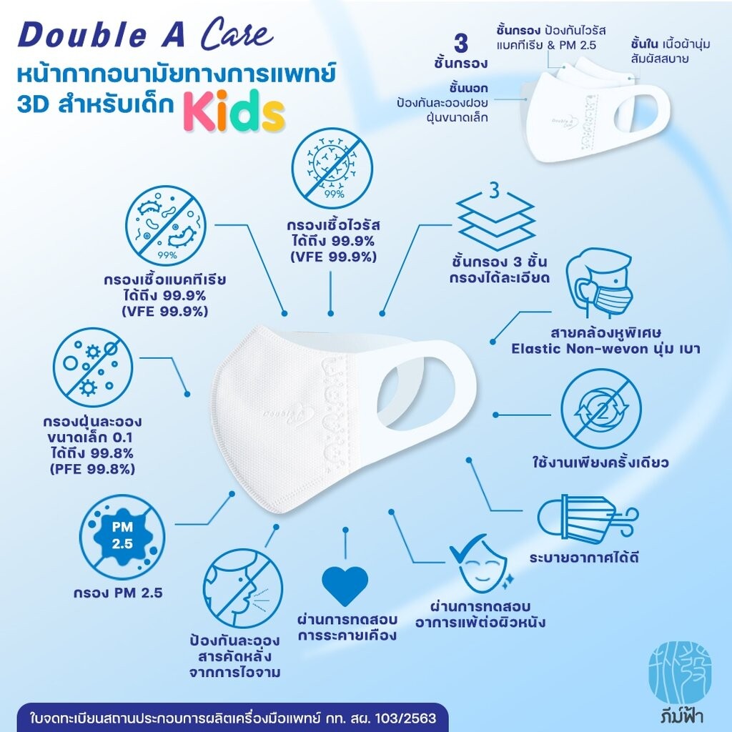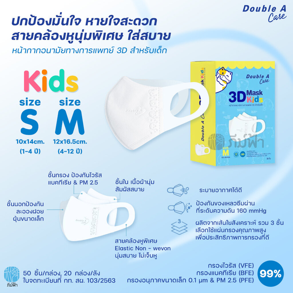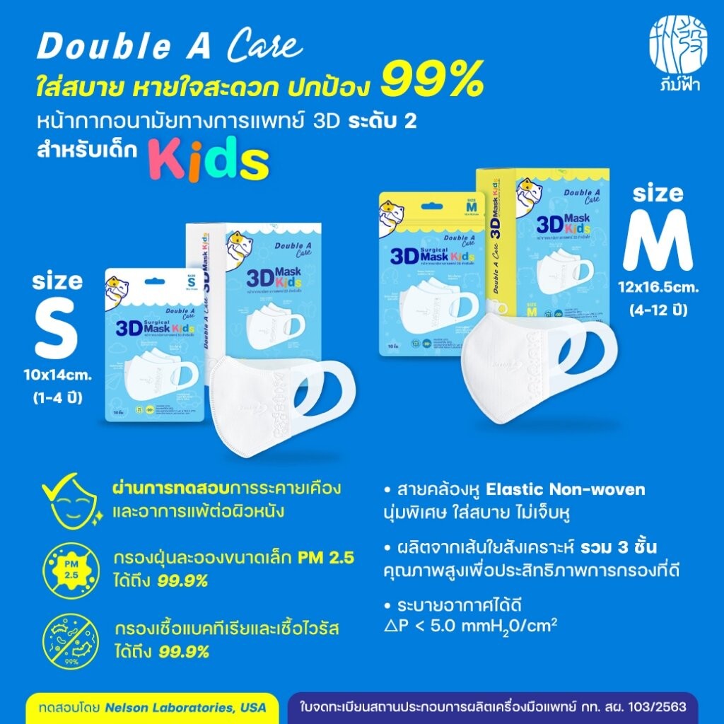 Double A Care Mask Kids หน้ากากอนามัยทางการแพทย์ 3D สำหรับเด็ก Size S/M