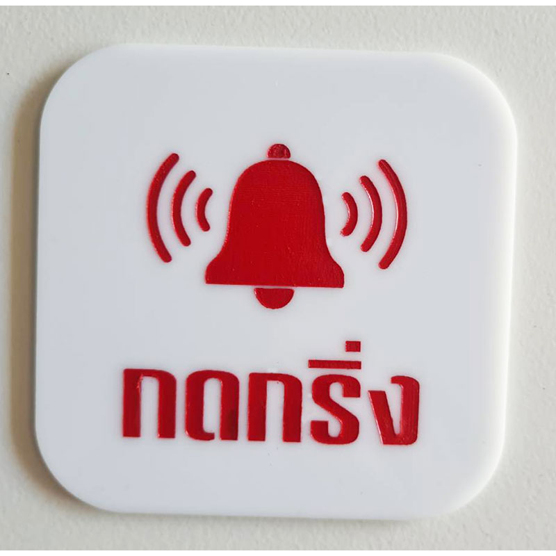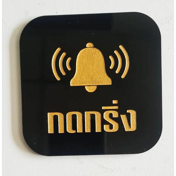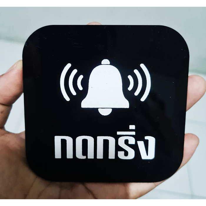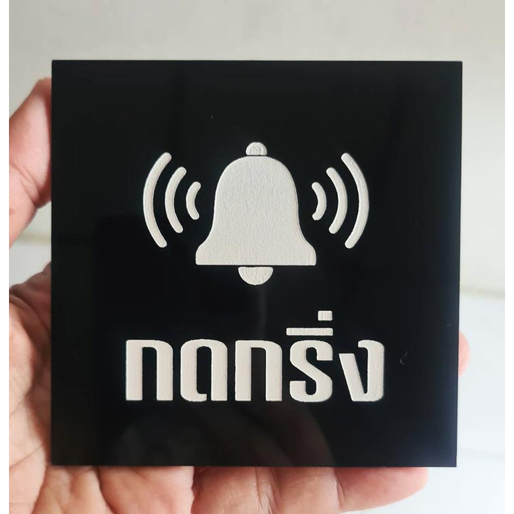 ป้ายกดกริ่ง กรุณากดกริ่ง สไตล์ มินิมอล ป้ายอคริลิค เลเซอร์ทำสี ทนแดด ทนฝน ขนาด 9x9 ซม. หนา 3 มิล
