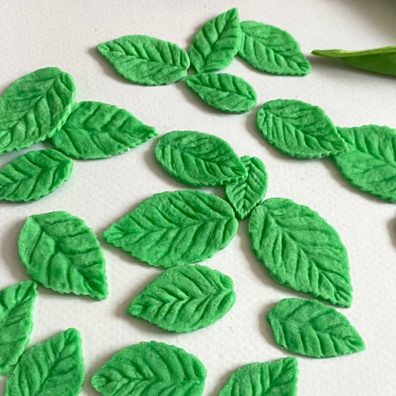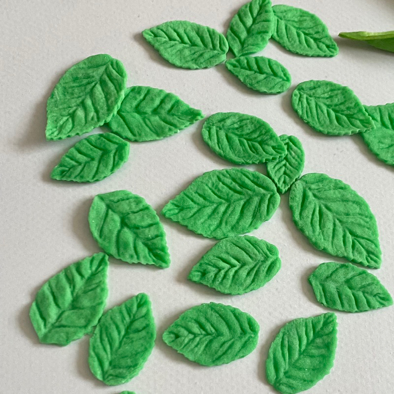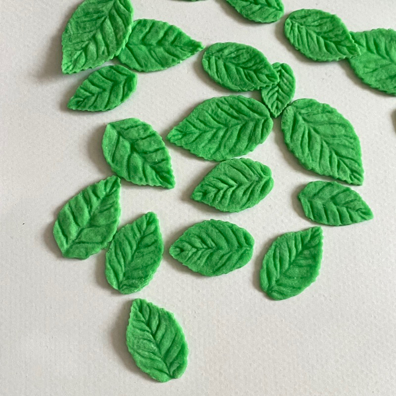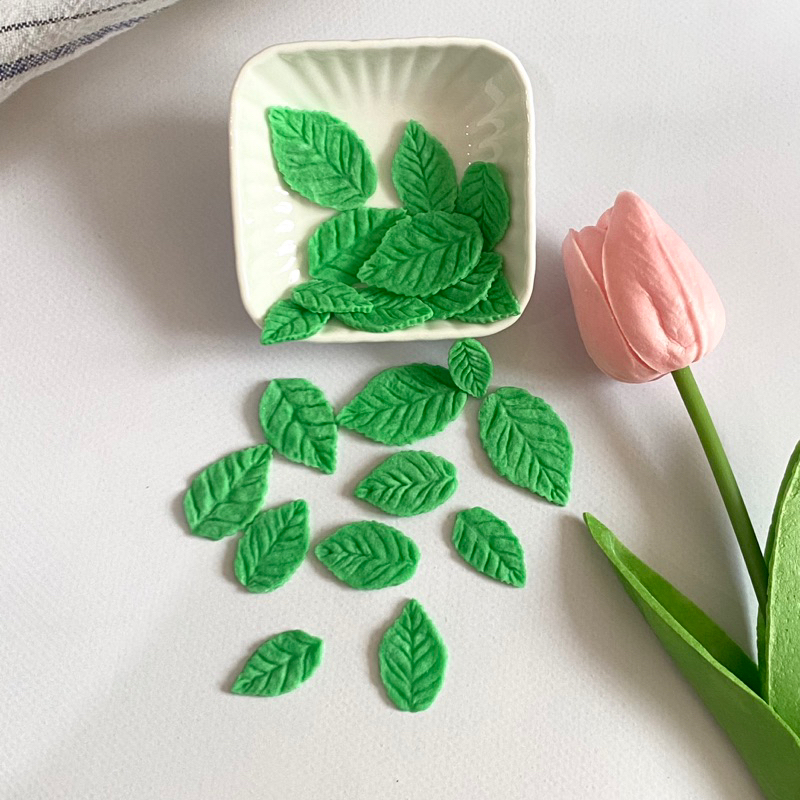 น้ำตาลปั้นรูปใบไม้ มีหลายขนาด ใช้แต่งหน้าคัพเค้ก เค้กก้อน ปริมาณ 30กรัม แบบคละไซส์ สีจริงละมุนกว่าในรูป ขนาดประมาณ3-1.5cm. **รอสินค้าประมาณ1-2วัน เพราะทางร้านทำตามออเดอร์ค่ะ** ทางร้านใช้วัดถุดิบอย่างดี มีกลิ่นหอม สีผสมอาหารที่ใช้เป็นสีเจล นำเข้าจากต