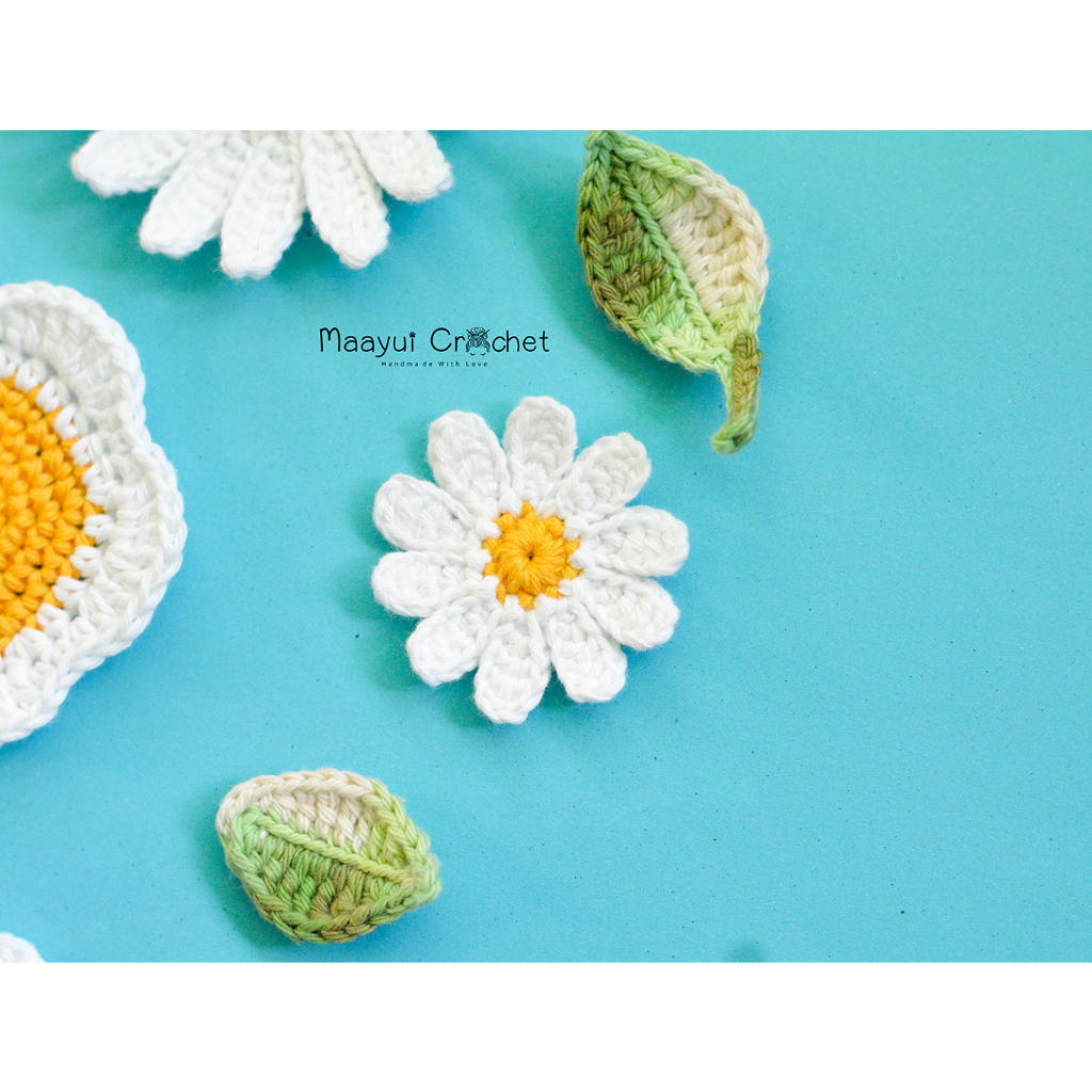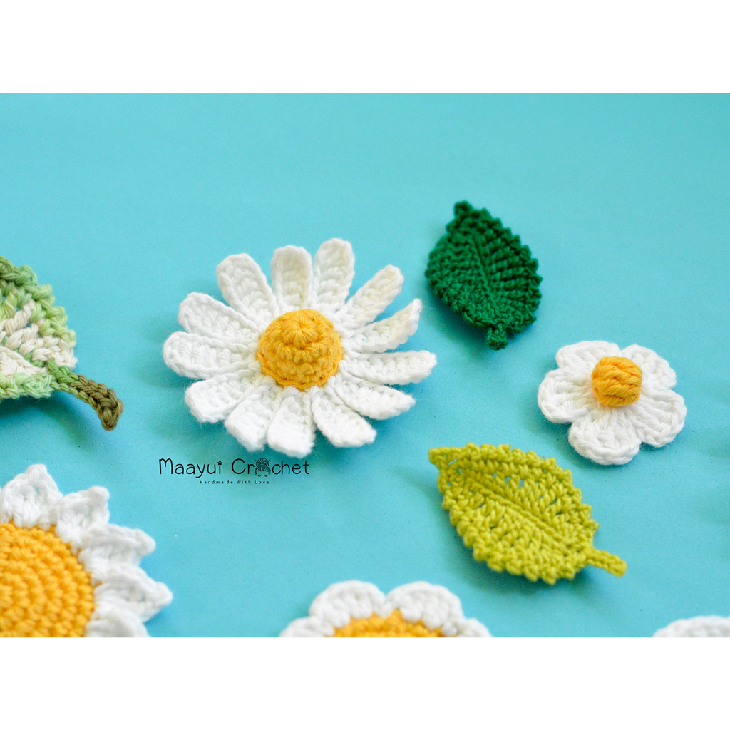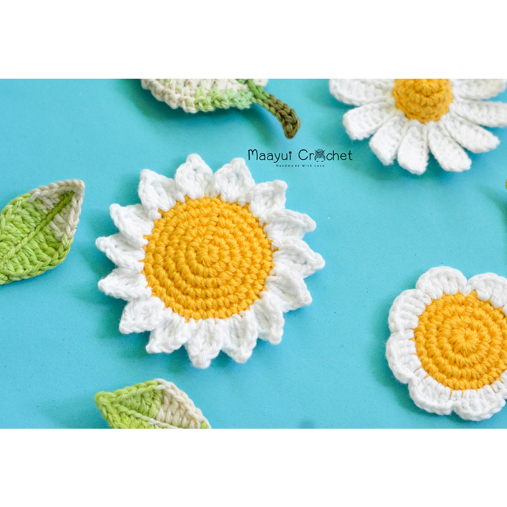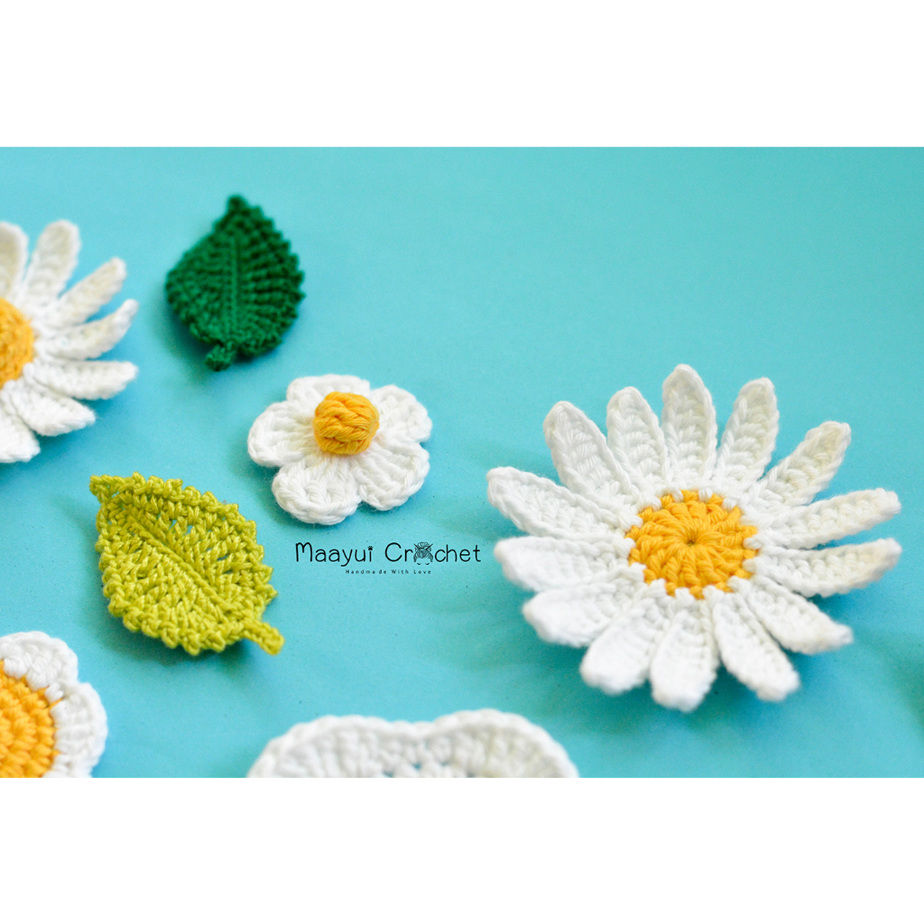Crochet daisy I ดอกเดซี่ถักโครเชต์ หลายขนาด หลายรูปแบบ สำหรับตกแต่งชิ้นงานdiy