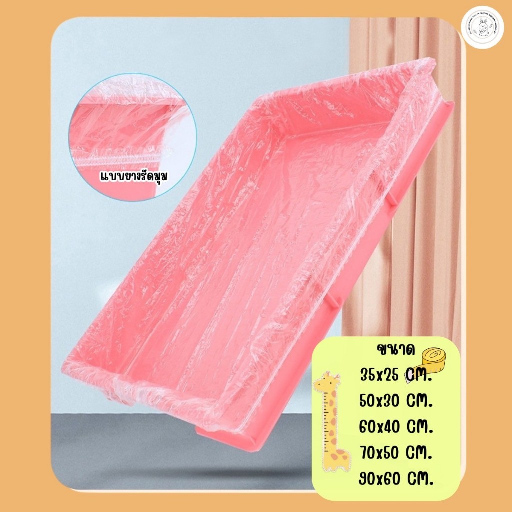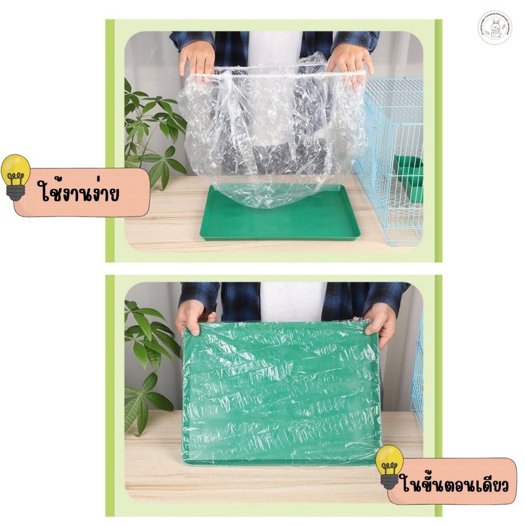 ฟิล์มพลาสติก รองถาดกรงสัตว์เลี้ยง อุปกรณ์ห้องน้ำ กระต่าย (แบบมียางรัดมุม) 1แพ็ค / 10 ชิ้น