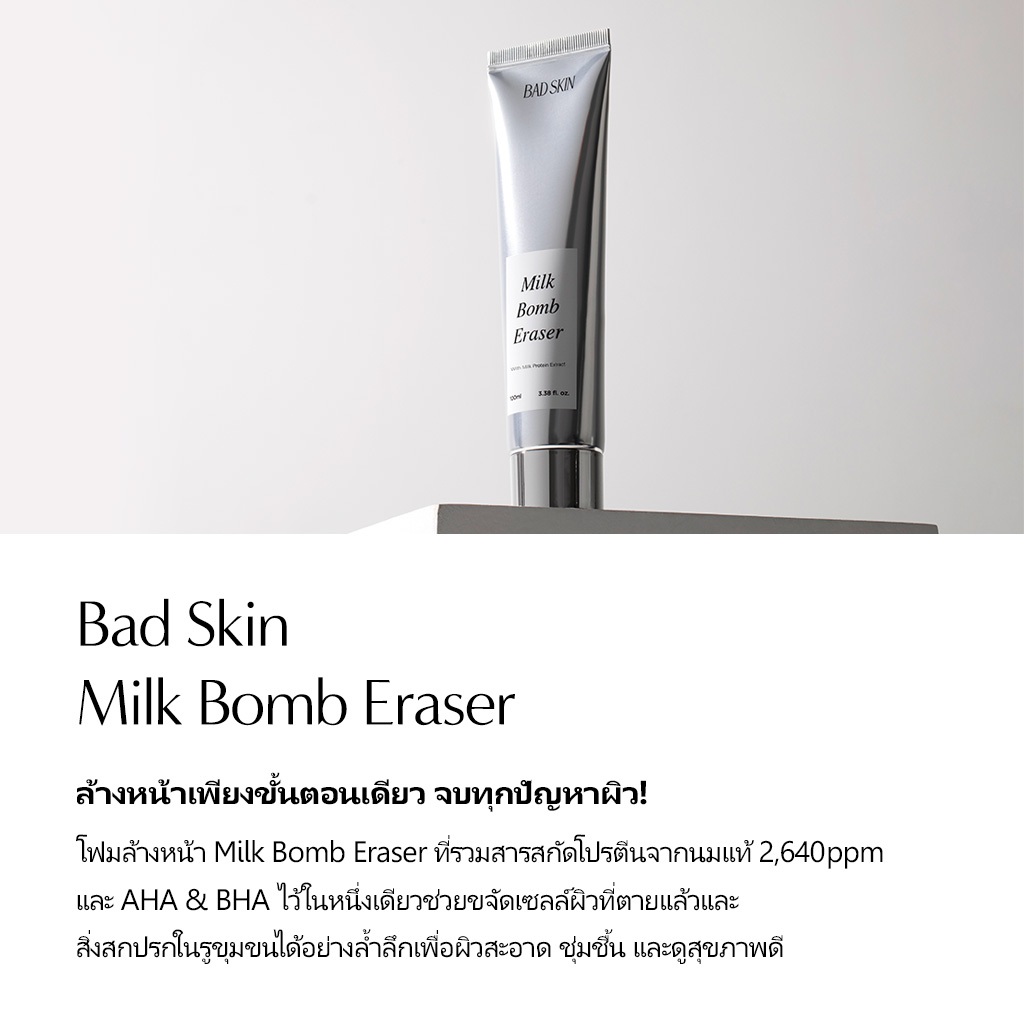 [BADSKIN KOREA] Milk Bomb Eraser 100ml, โฟมล้างหน้าสำหรับใช้ทุกวัน, AHA BHA, โปรตีนนม, ผลิตในเกาหลี