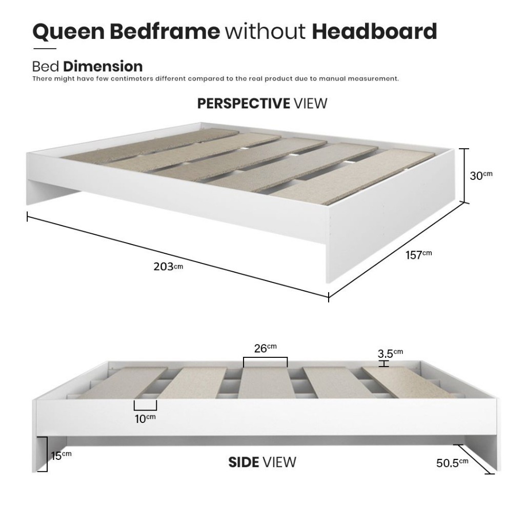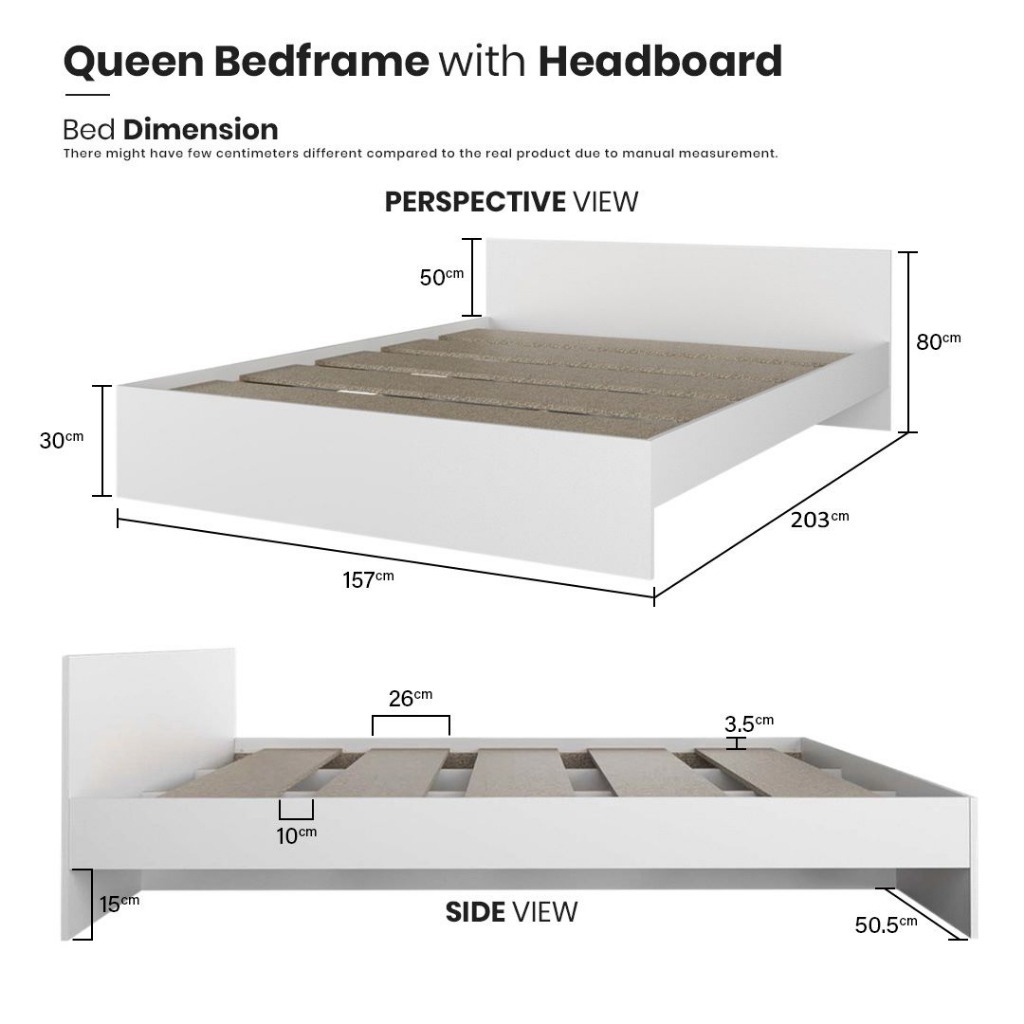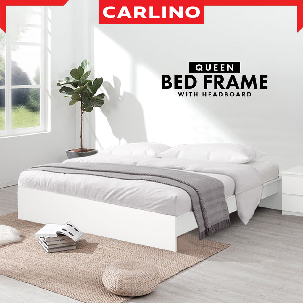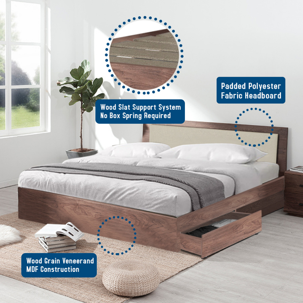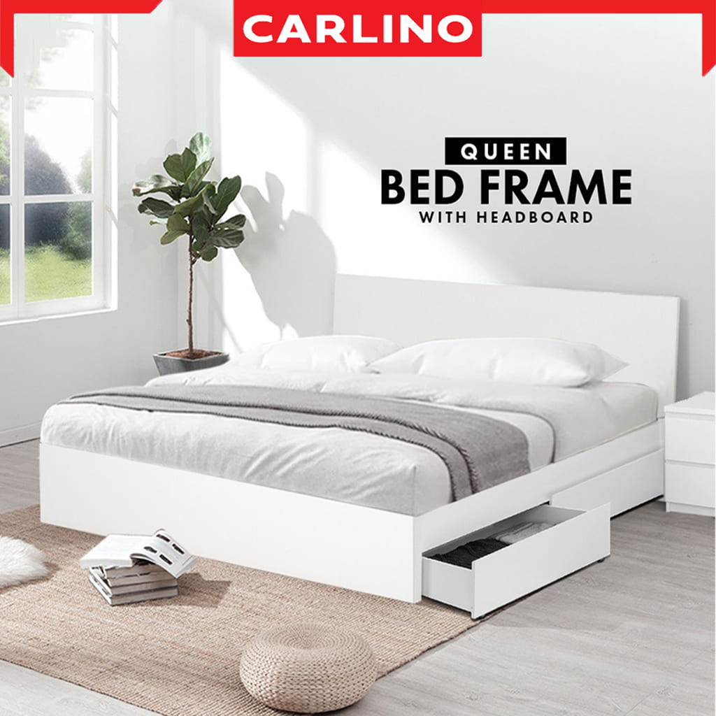 Carlino : โครงเตียงไม้ขนาดควีนไซส์ 2 ลิ้นชักพร้อมฟองน้ำ /หัวเตียงพร้อมลิ้นชัก 2 ตู้/โครงเตียง Snow Queen Bed Frame