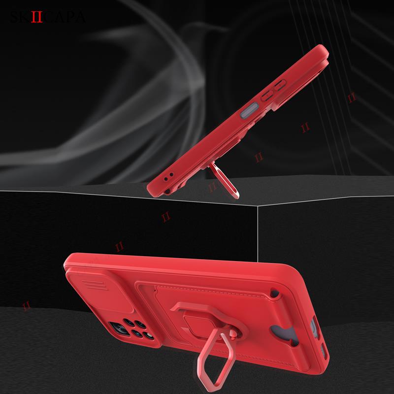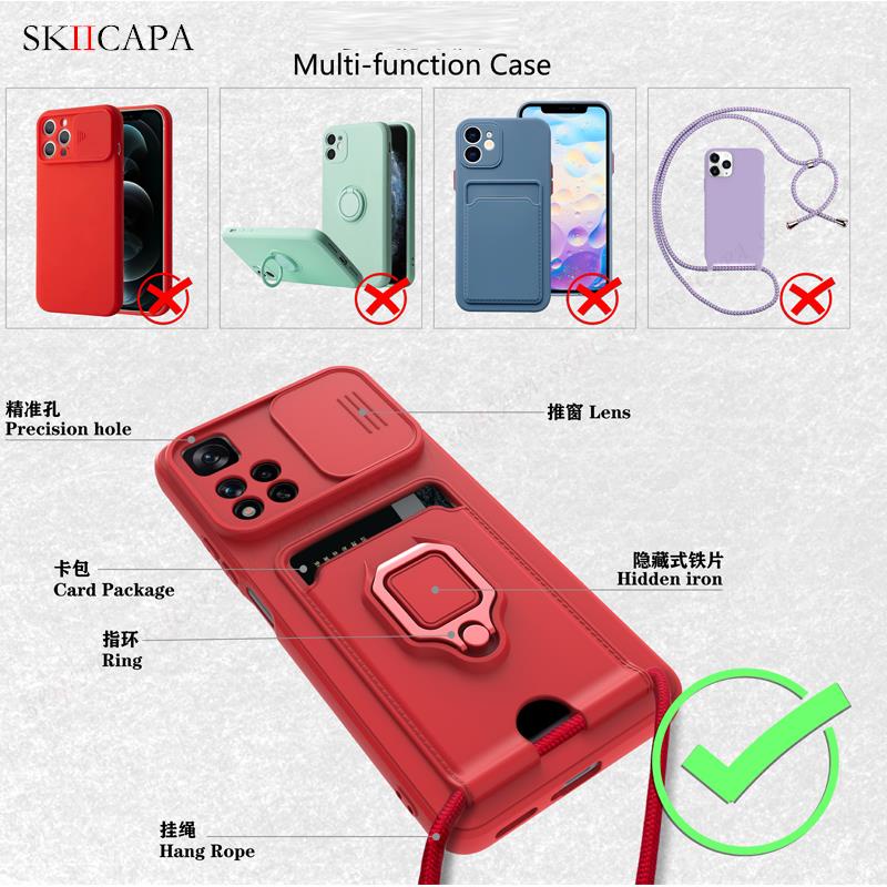 เคสโทรศัพท์มือถือ ซิลิโคนนิ่ม พร้อมสายคล้อง และช่องใส่บัตร และแหวนแม่เหล็ก สําหรับ Xiaomi 11T Pro Mi 11T 11 Lite 5G POCO M4 Pro M3 Pro